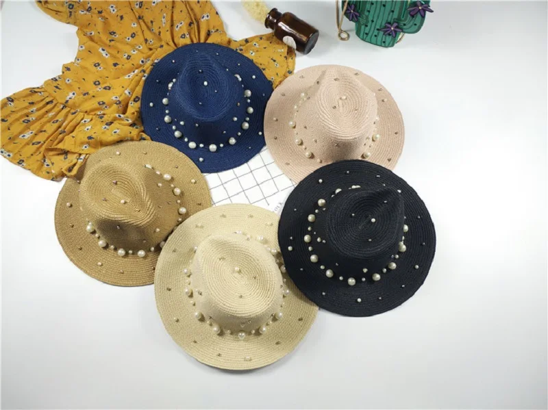 Название:2021 Новая летняя британская жемчужная расшитая бисером соломенная затенение шляпа от солнца Женская пляжная шляпа Солнцезащитная модная джазовая шапка