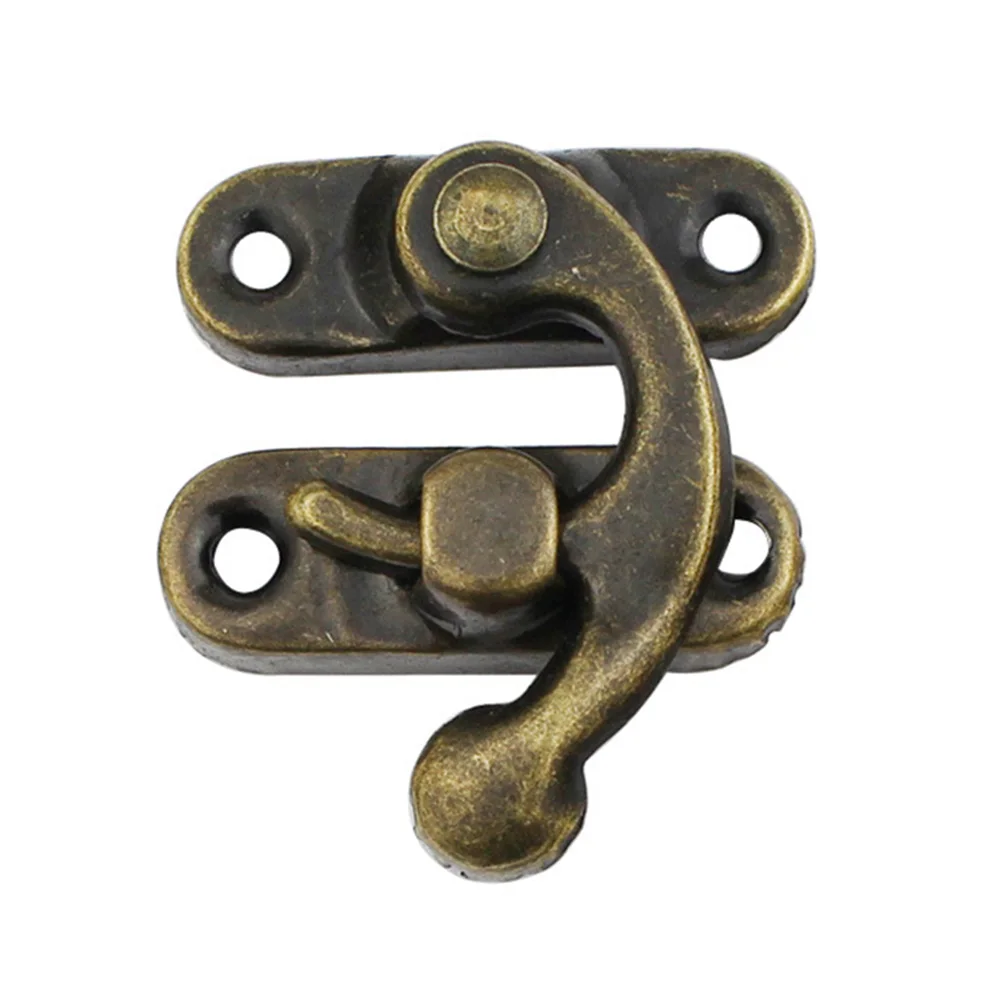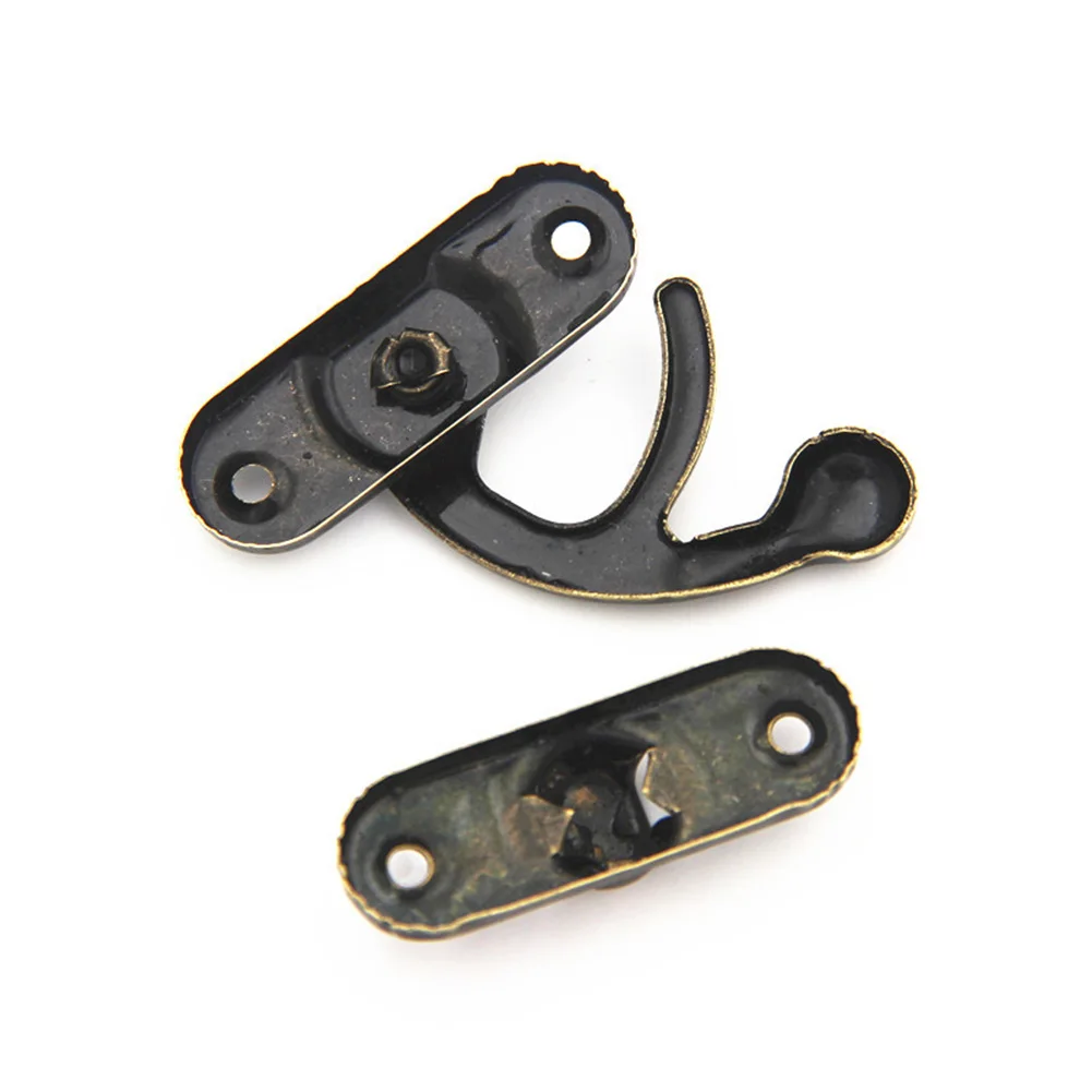 Антикварная бронзовая железная висячая защелка с крюком для мини ювелирных изделий, деревянная коробка с винтами, мебельная фурнитура, защелка, замок, застежка, пряжка.