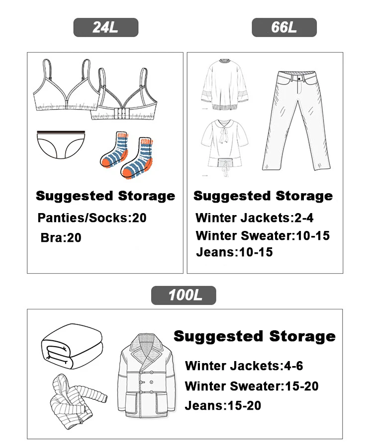 Применение: подходит для хранения одежды, одеял, игрушек, фотографий, детской одежды и т. д.