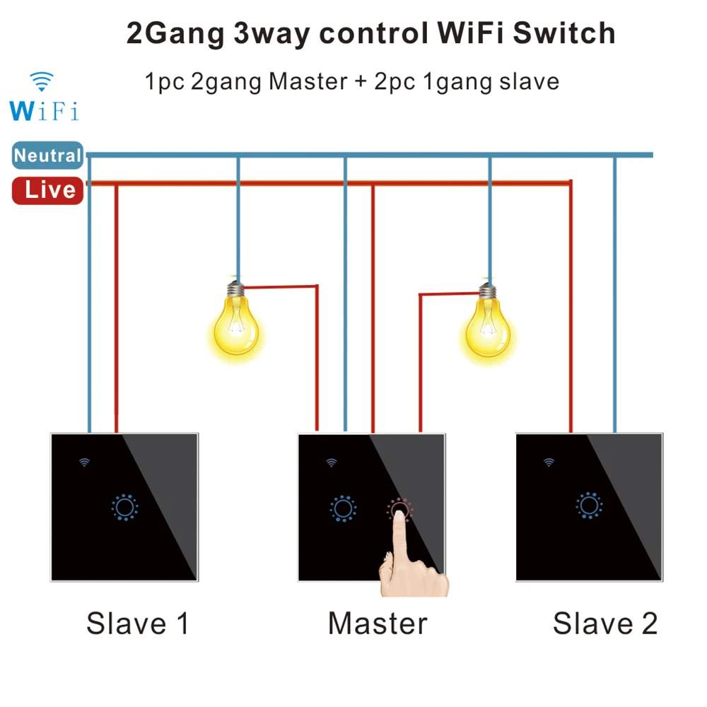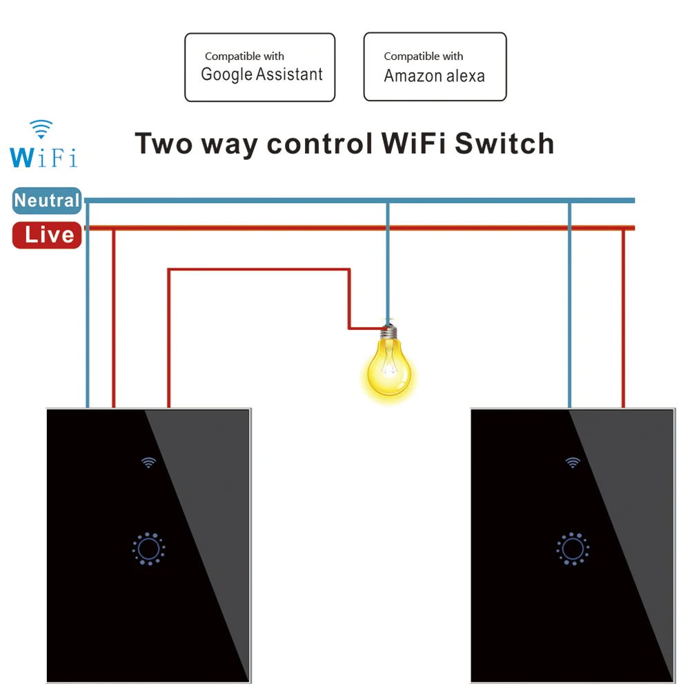 2-полосная умный переключатель может быть управлять через приложение, голосовое управление и сенсорным управлением, каждый контрольный метод работает вне зависимости от и non-помехи.