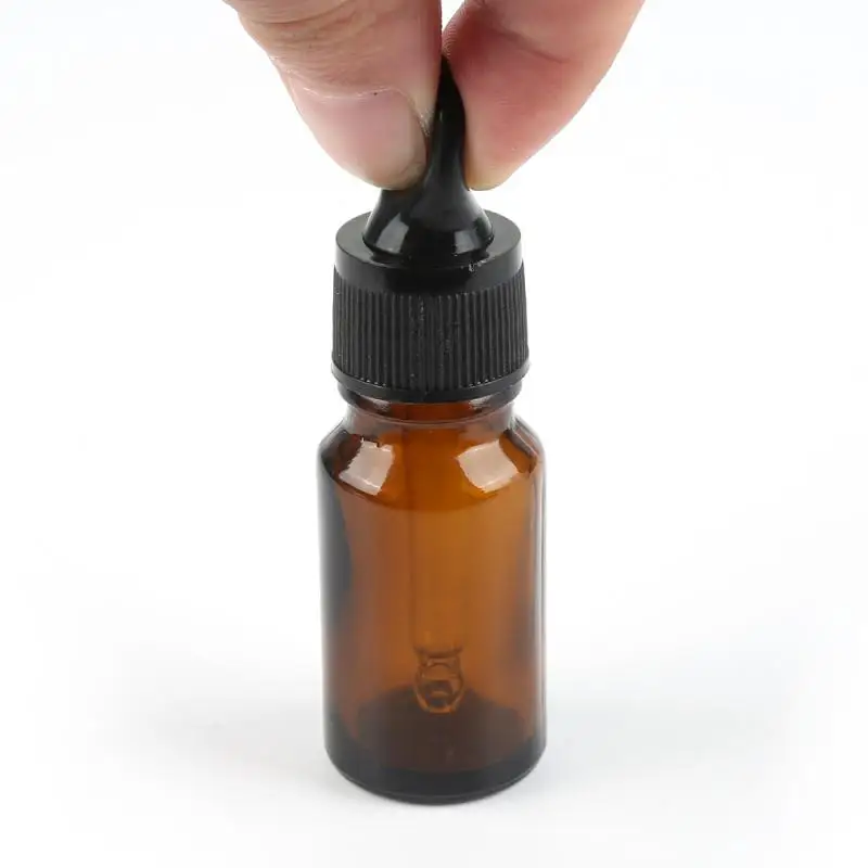Янтарные стеклянные бутылки со стеклянными капельками, крышка капельницы с черной крышкой.