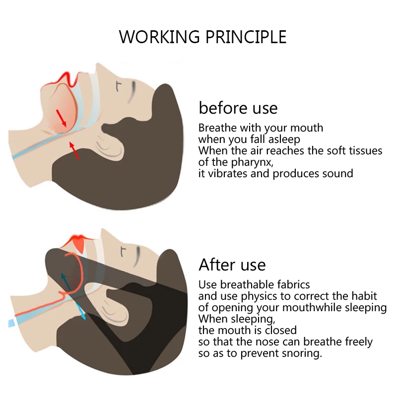 Ремень храпа работает для людей, которые хранит открытым ртом. Помогает при храпе, апноэ во время сна, шлифовке зубов, синдроме и боли TMJ путем правильного позиционирования вашей челюсти. Некоторые общие эффекты апноэ во время сна при отсутствии лечения: