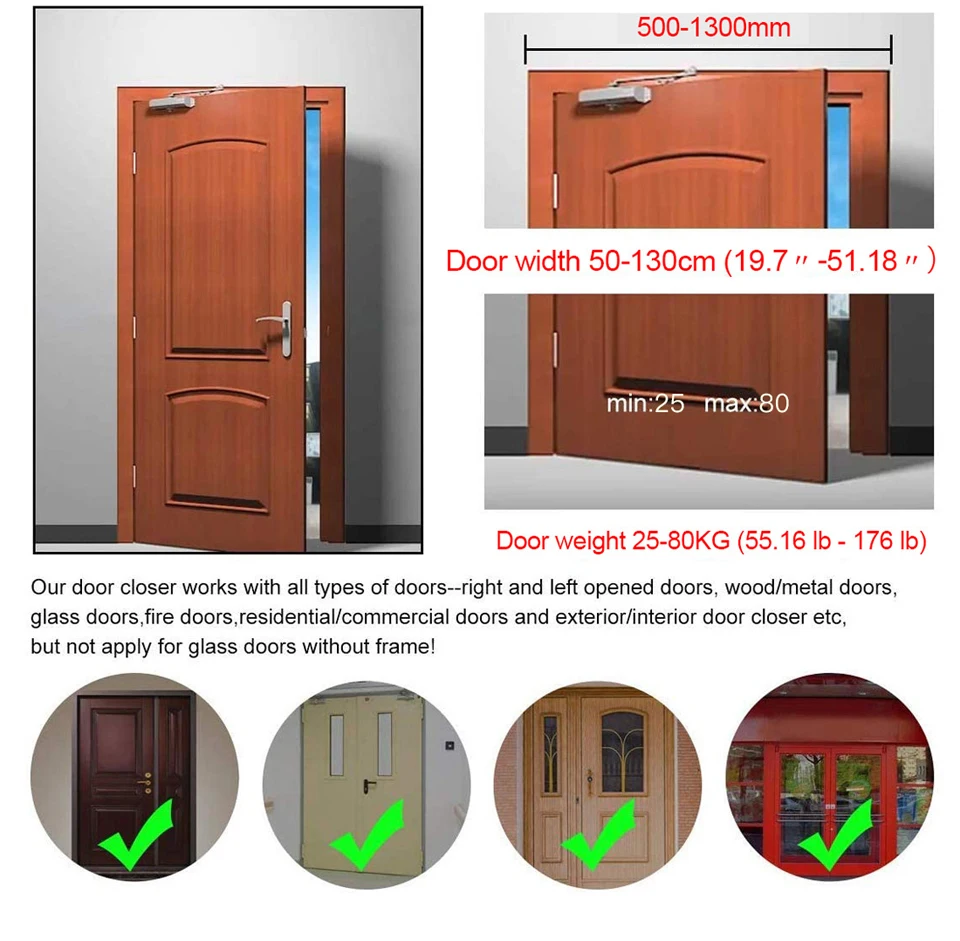 Выберите размер двери в соответствии с размером и весом вашей двери.