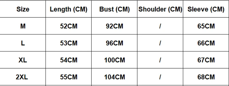 Таблица размеров
