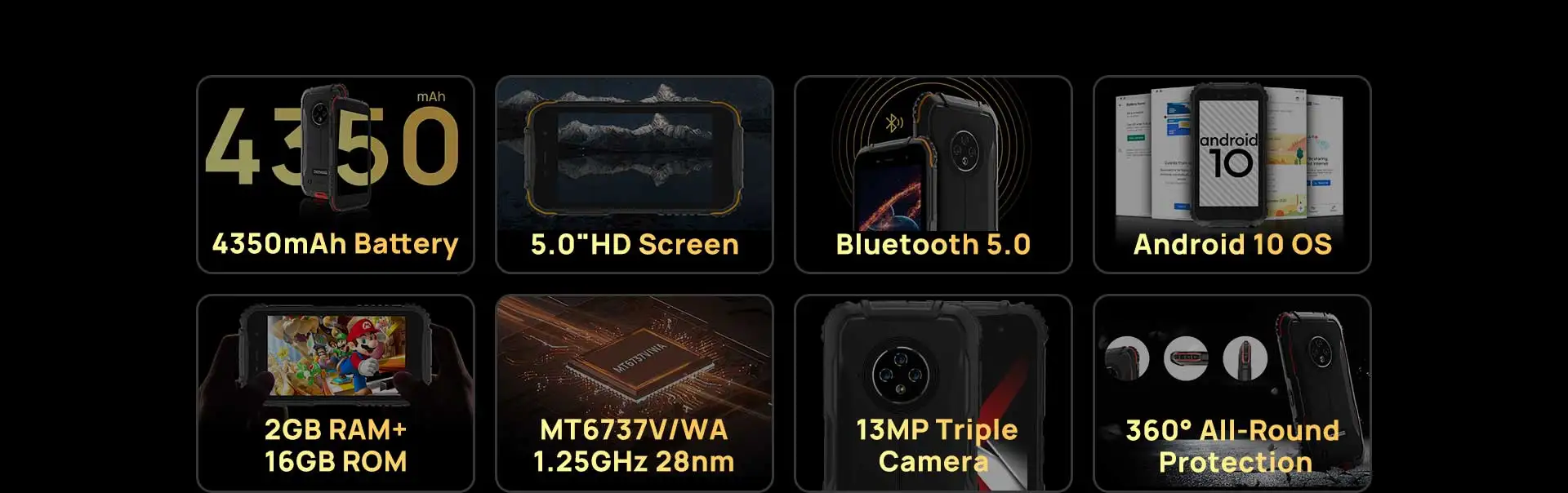 DOOGEE S35 IP68 водонепроницаемый прочный телефон Android 10.0 четырехъядерный 1,25 ГГц 28нм 2 ГБ + 16 Гб мобильный телефон 4350 мАч аккумулятор смартфон