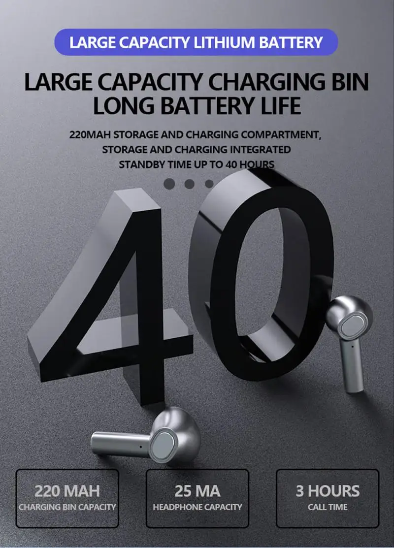 Working time: 3-4 hours, the charging chamber can charge the headset 3 times +.