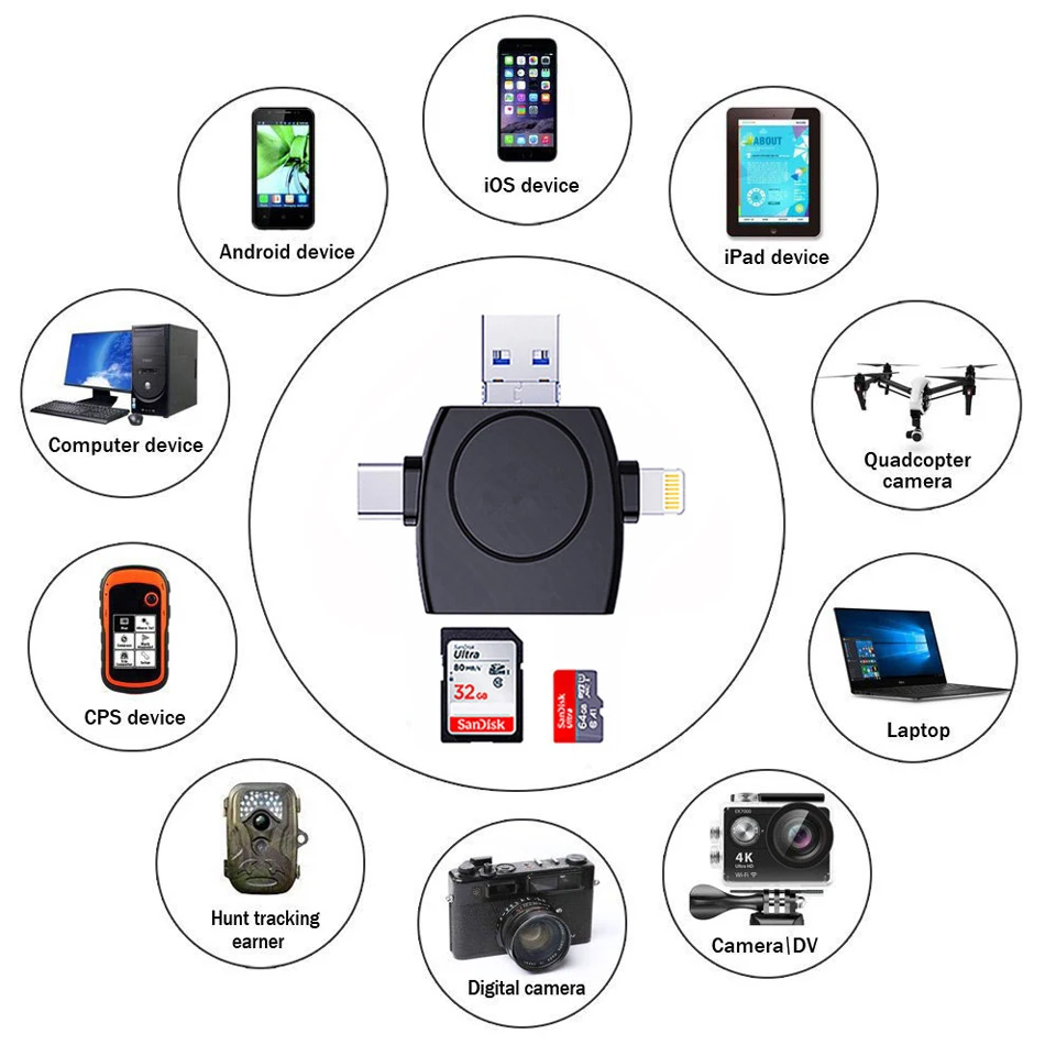 1 * кабель для передачи данных(Может быть только подключить к компьютеру, в том случае, если вы хотите, чтобы подключить к вашему телефону, вам нужно выбрать 4-в-1 кард-ридер)