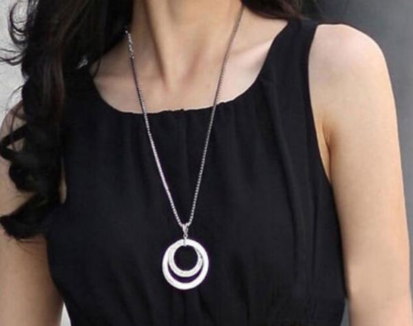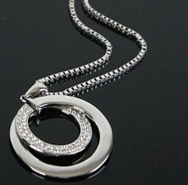 Длинная цепочка Женская мода Кристалл Стразы, Посеребренная Подвеска, подарок