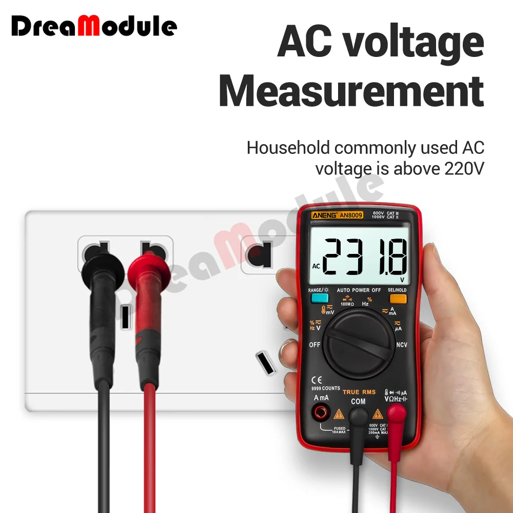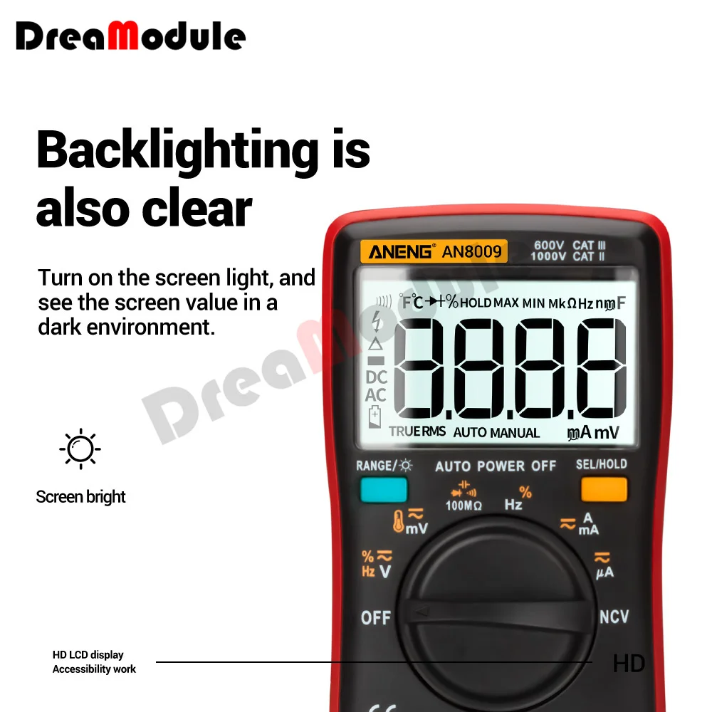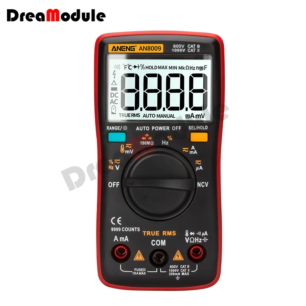AN8009 автоматический Диапазон Цифровой мультиметр 9999 отсчетов с подсветкой AC DC Амперметр Вольтметр Ом Транзистор тестер мульти метр