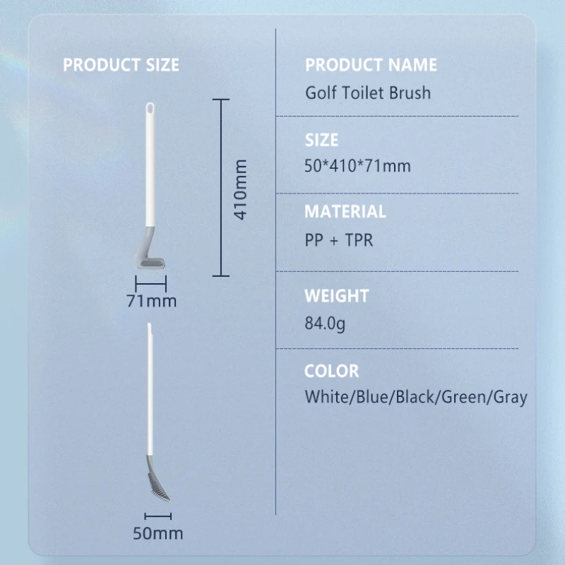 Уникальный дизайн головки для гольфа, и каждый угол подходит для унитаза, не оставляя слепых пятен. Можно глубоко очистить любой уголок унитаза. Легко чистить углы и темные пазы.
