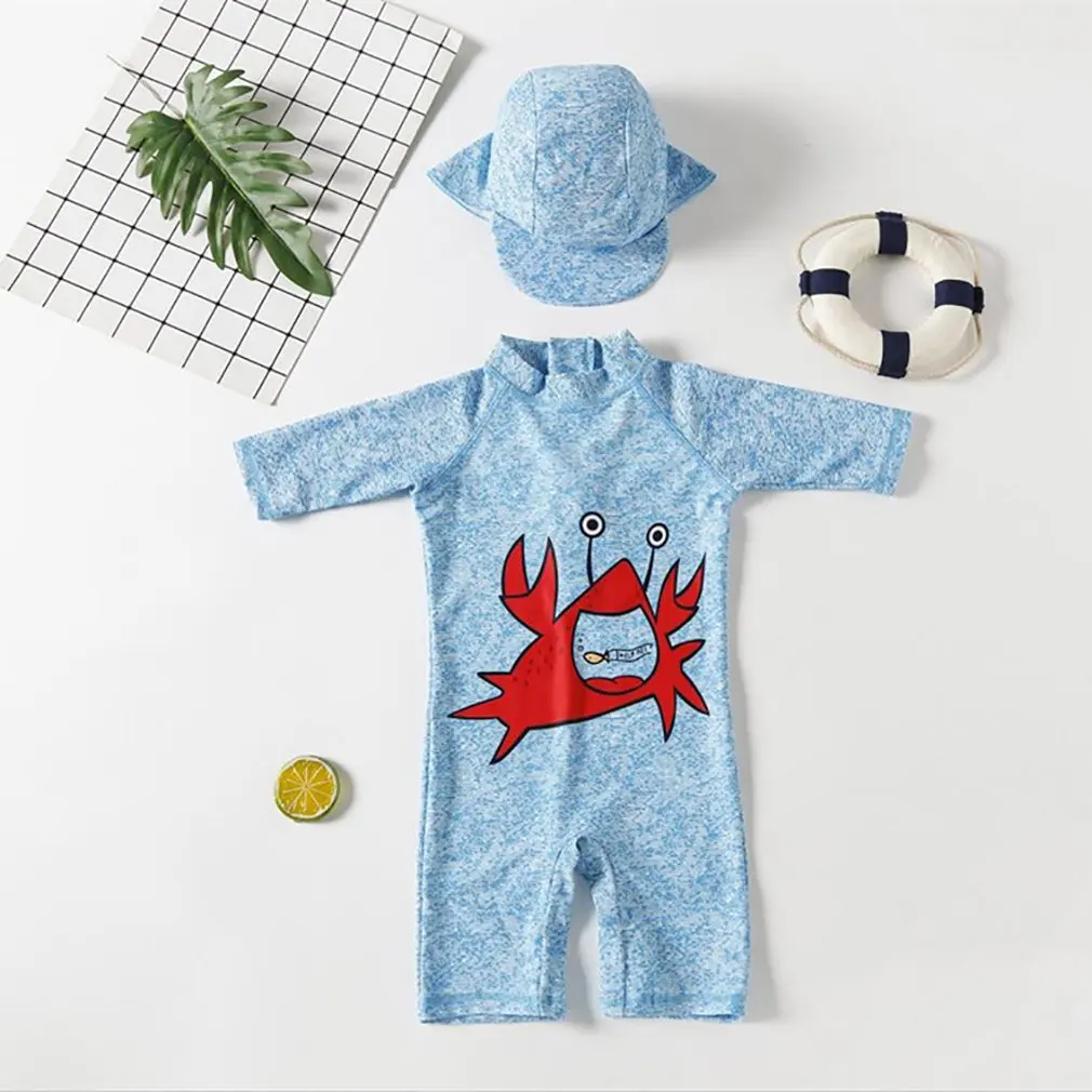 Купальный костюм с рисунком алого цвета для мальчиков + шапочка для плавания, комплект для мальчиков 2-7 лет, популярный весенний купальный костюм для детей, летний купальный костюм с короткими рукавами и круглым вырезом для мальчиков