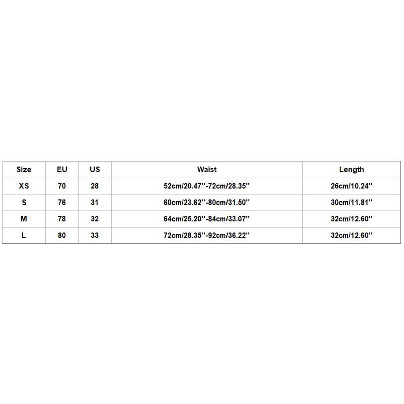 Размеры ЕС США Талия Длина XS 70 28 52 см/20,47 ''-72 см/28,35'' 26 см/10,24'' S 76 31 60 см/23,62 ''-80 см/31,50'' 30 см/11,81'' М 78 32 64 см/25,20 ''-84 см/33,07'' 32 см/12,60'' L 80 33 72 см/28,35 ''-92 см/36,22'' 32 см/12,60''