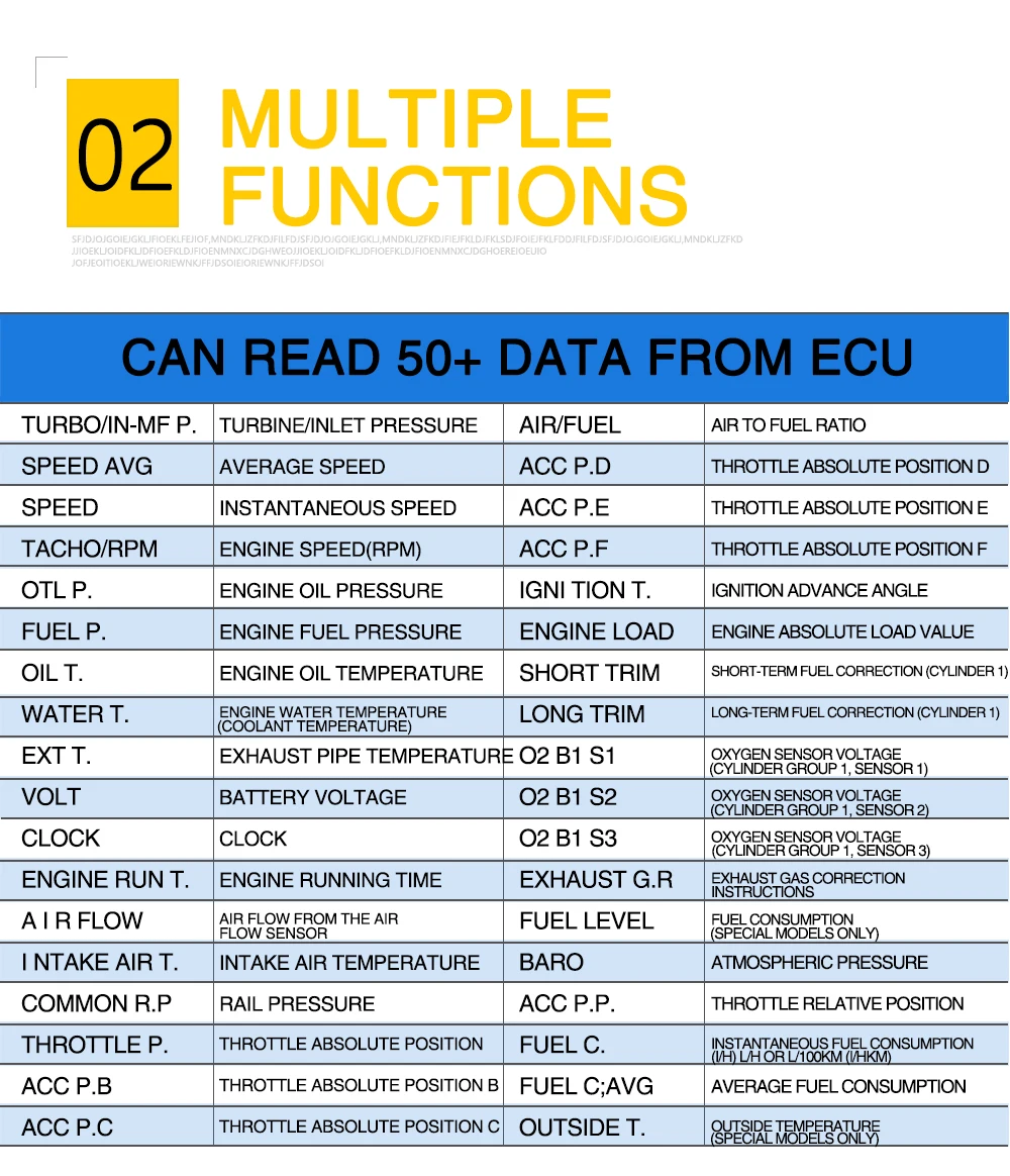 1. Доступно для автомобилей с OBD2 и EUOBD портом (автомобильная автоматическая система диагностики), подключи и работай