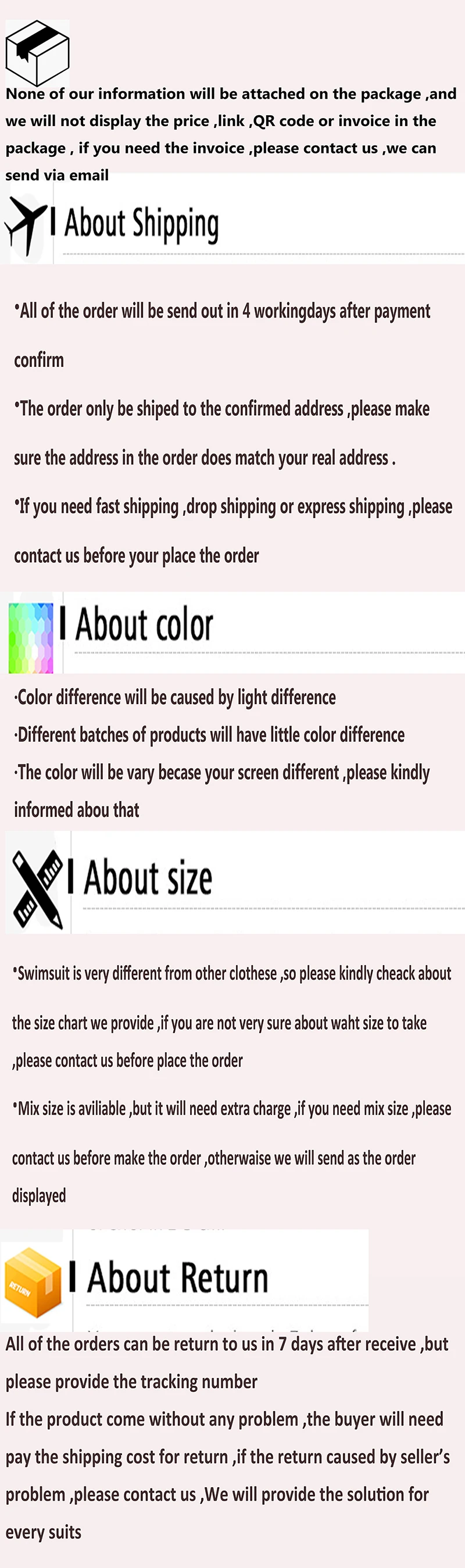 1. Пожалуйста, правильно измерьте свой размер груди, талии и бедер и выберите подходящий размер, руководствуясь «таблицей размеров». Размер может отличаться на 1-3 см из-за ручного измерения (1 дюйм = 2,54 см, 1 см = 0,39 дюйма).