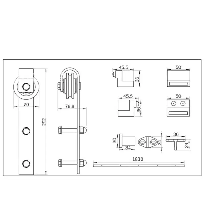 Название продукта: комплект подвесных рельсовых шкивов для двери сарая (классический) с одной дверью
