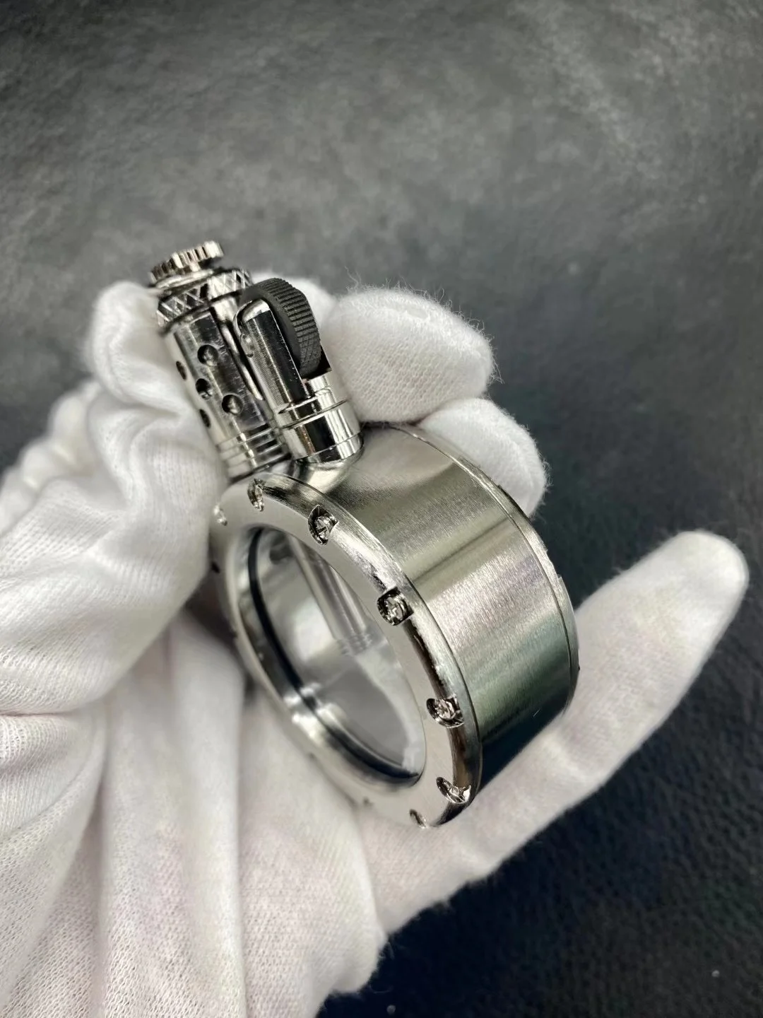 Handmade Lighter Pure Copper Kerosene Lighters Quartz Visible Transpaarent Oil Tank Portable Round Collection Gift for Man
