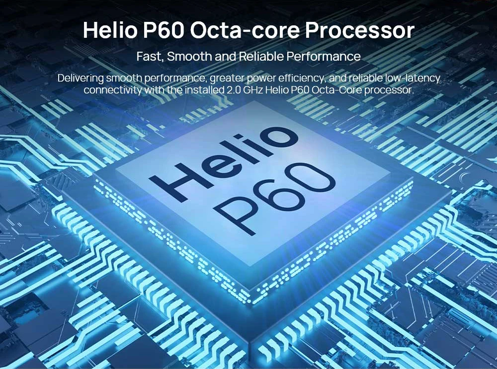 И надежный с низким уровнем задержки подключения с установленной 2,0 ГГц процессор Helio P60 восьмиядерным процессором.