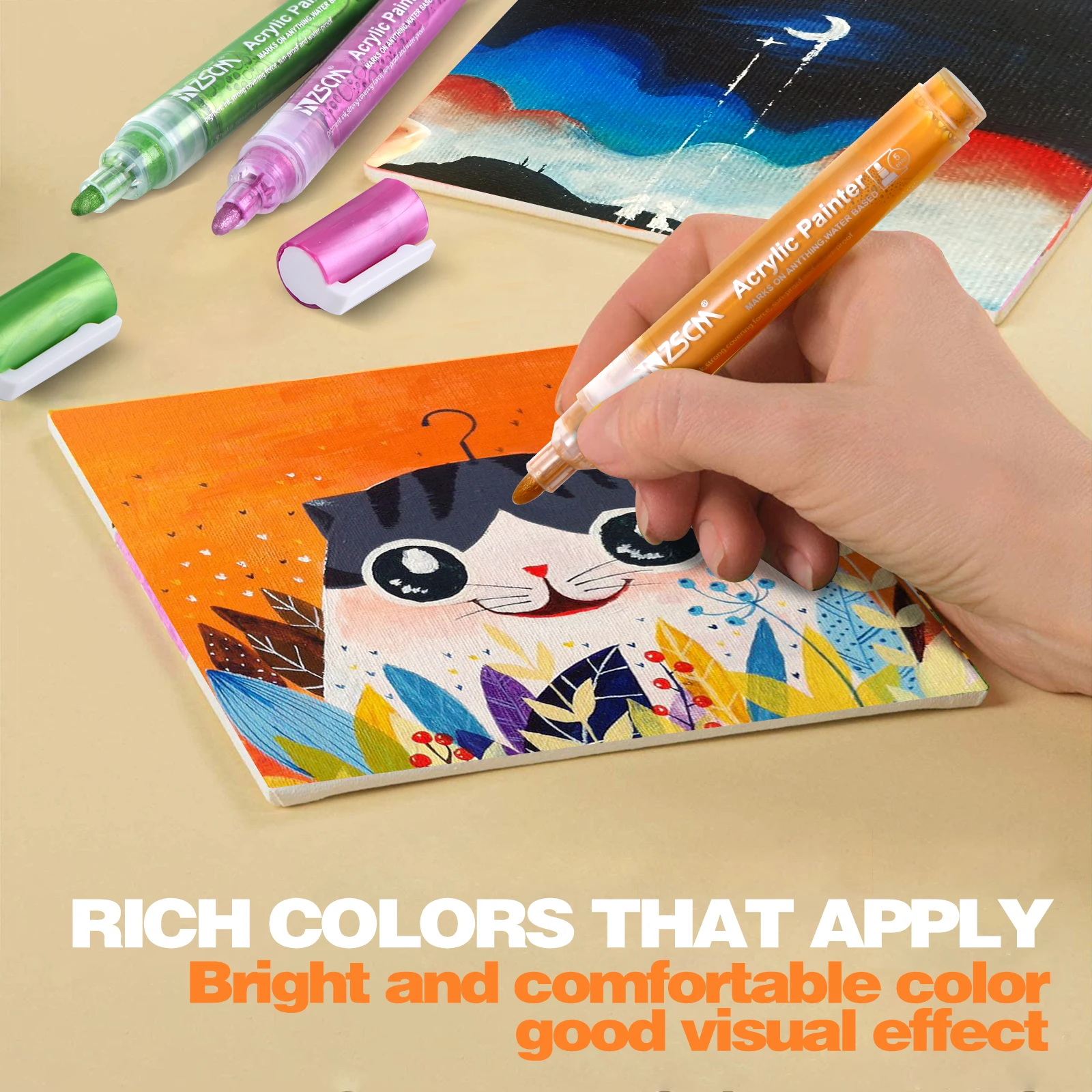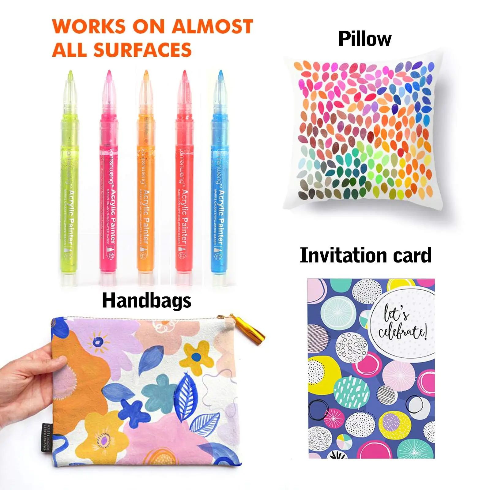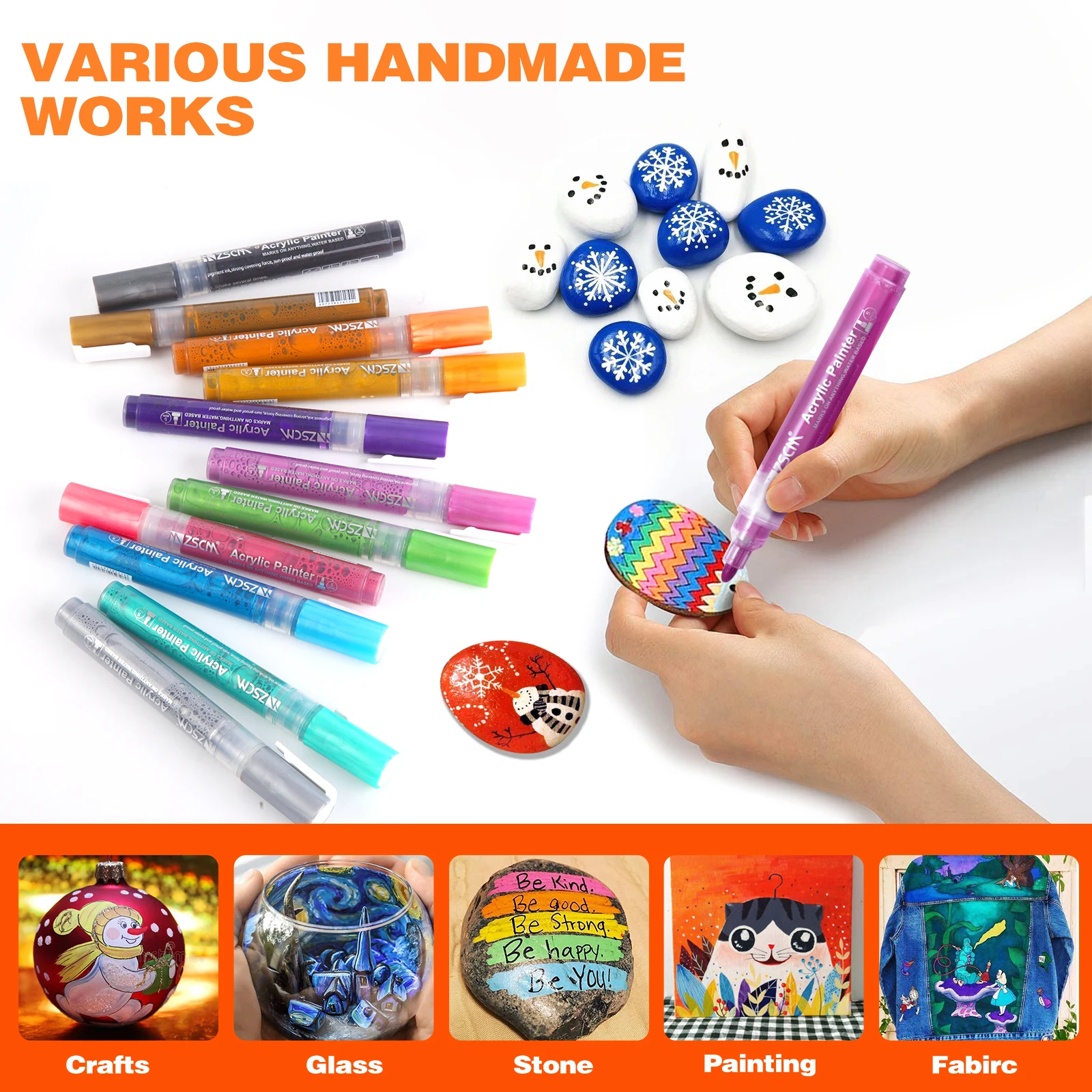 Эти акриловые маркеры-это базовый маркер для воды. Их можно мыть на некоторых непористых поверхностях, таких как стекло и керамика, но они хорошо держатся на пористой поверхности. После высыхания чернил мы рекомендуем надеть упаковщик, чтобы сделать его постоянным.