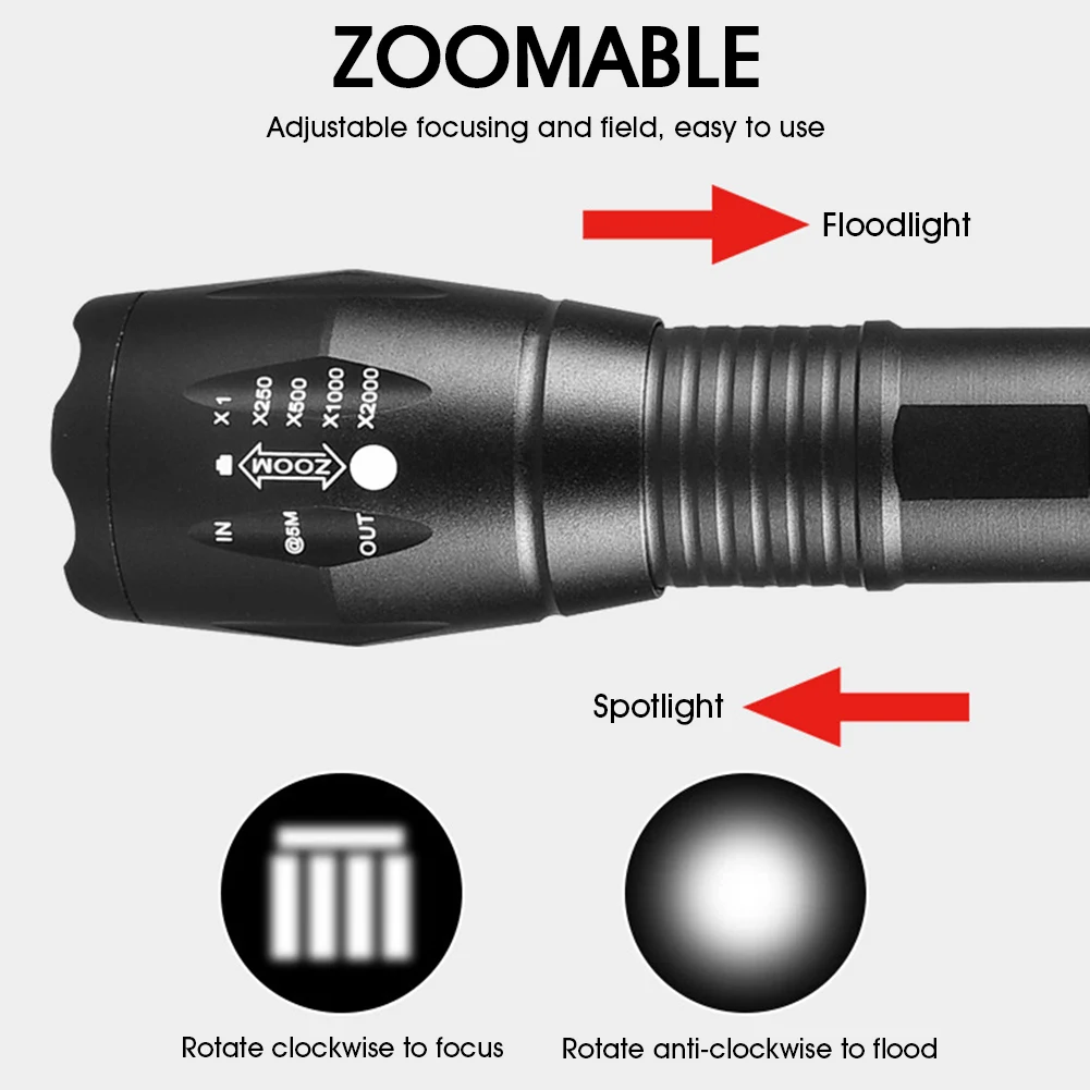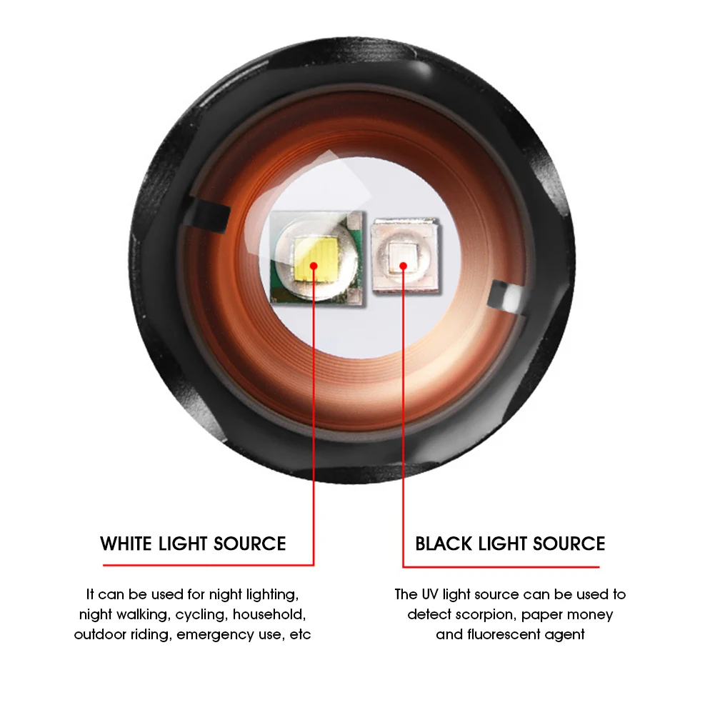 * 2. 2 в 1 фонарик, Масштабируемые для регулировки яркости и освещения.
