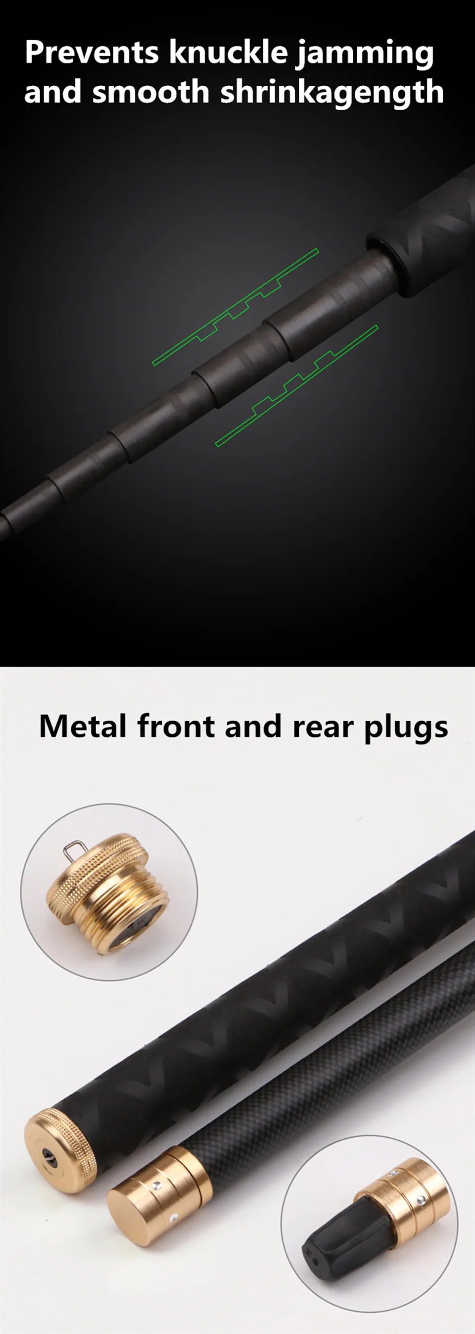 30T углеродное волокно и легкий дизайн/Высокое качество углеродное волокно со специальным внутренним укрепляющим, который добавляет прочность и жесткость. Повышенная прочность стен и толщина суставов на всех секциях для устранения потенциальных точек напряжения. Позволяет креппи-палкам быть чрезвычайно светильник, оставаясь достаточно сильным, чтобы положить бой.