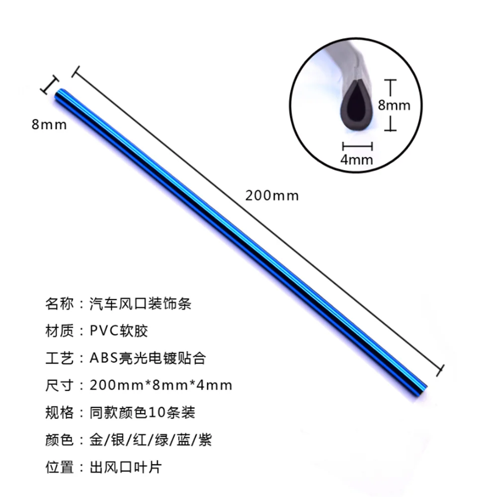 10 шт., автомобильный Стайлинг, хромированный стиль, литье под давлением, для автомобиля, вентиляционное отверстие, отделка, полоса, Кондиционер, выход, решетка, украшение, u-образная форма