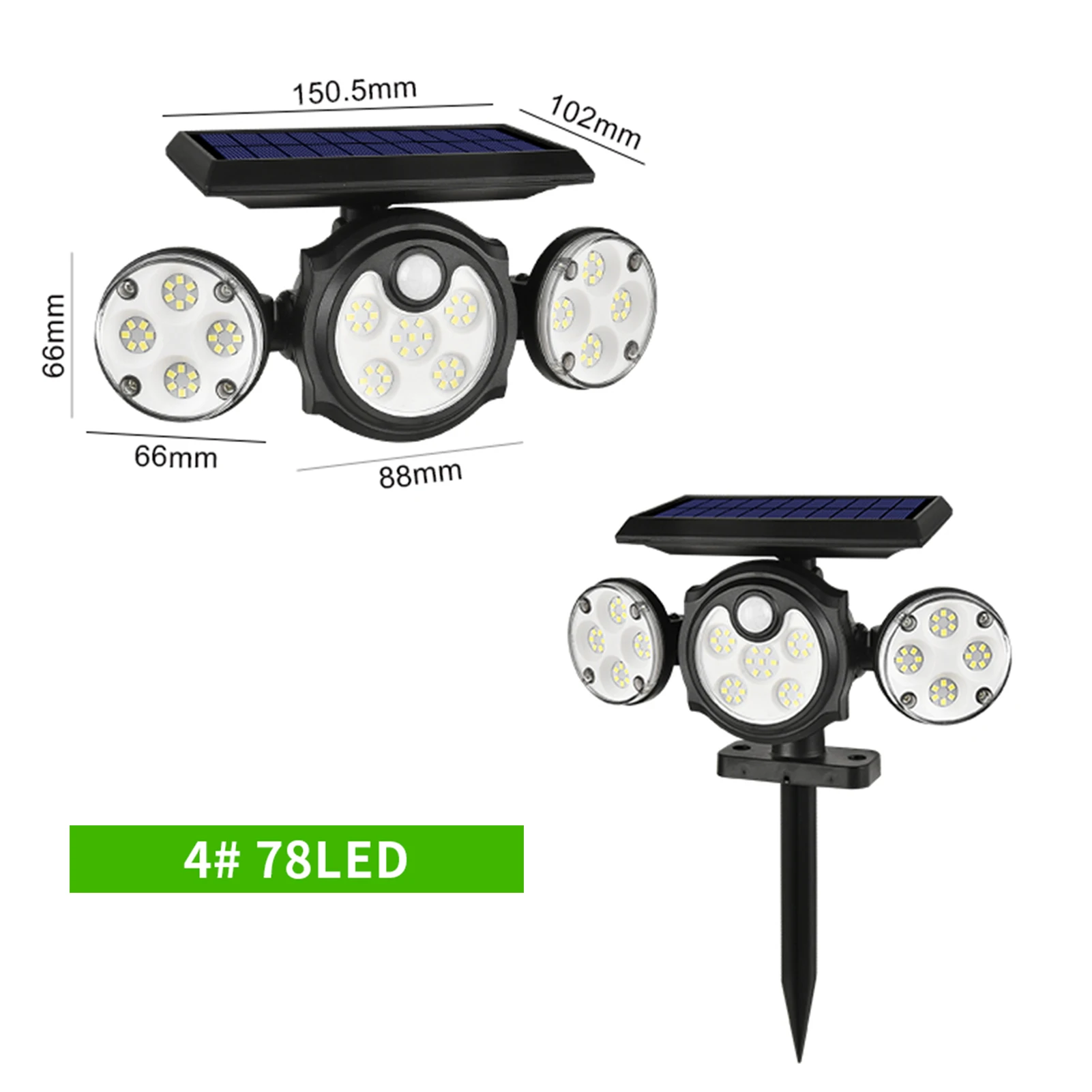 Регулируемая солнечная панель и 3 направления освещения с регулировкой угла.