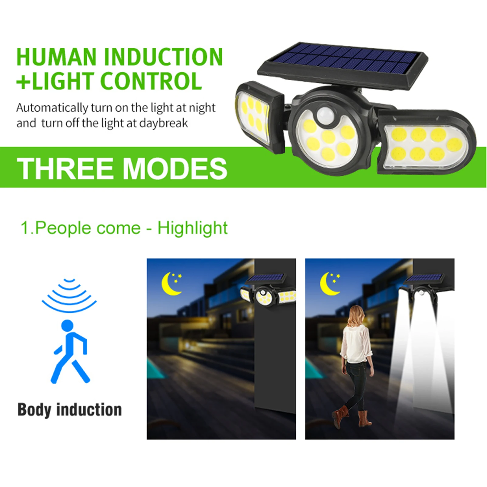 Солнечные прожекторы имеют 3 режима освещения, вы можете нажать кнопку для переключения.