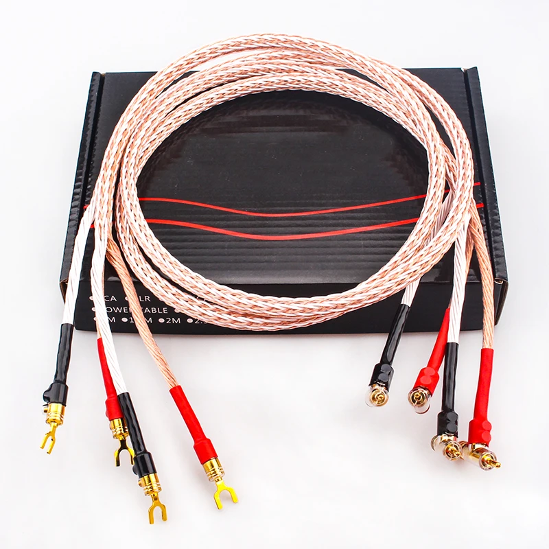 1 пара аудио 12TC OCC высокого класса Hi-Fi пистолет образный с золотым покрытием в виде буквы «R» в форме y-образной формы Лопата Вилка типа банан 24-core Акустический кабель
