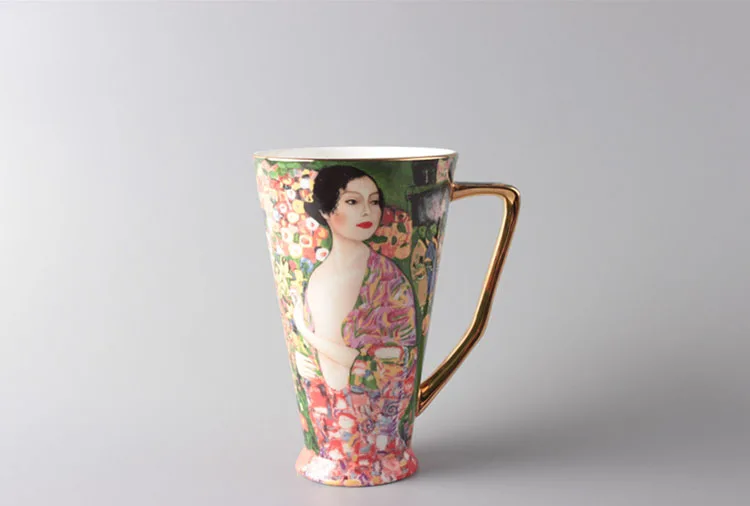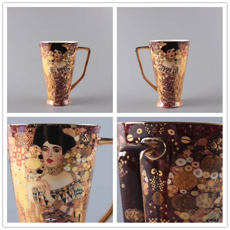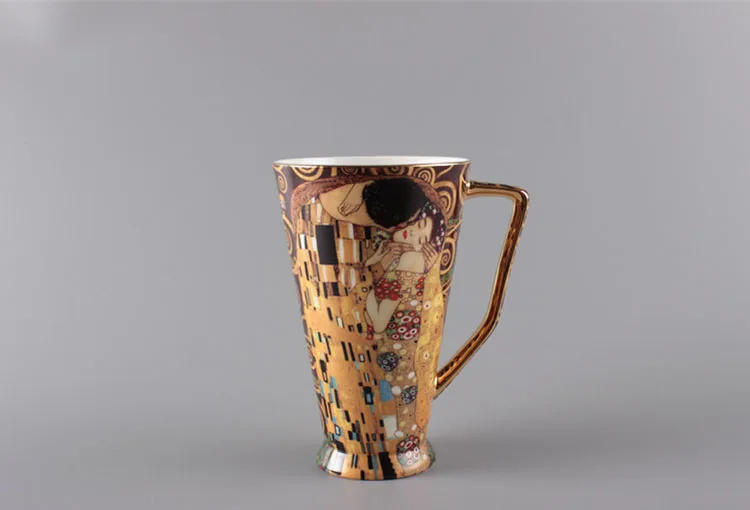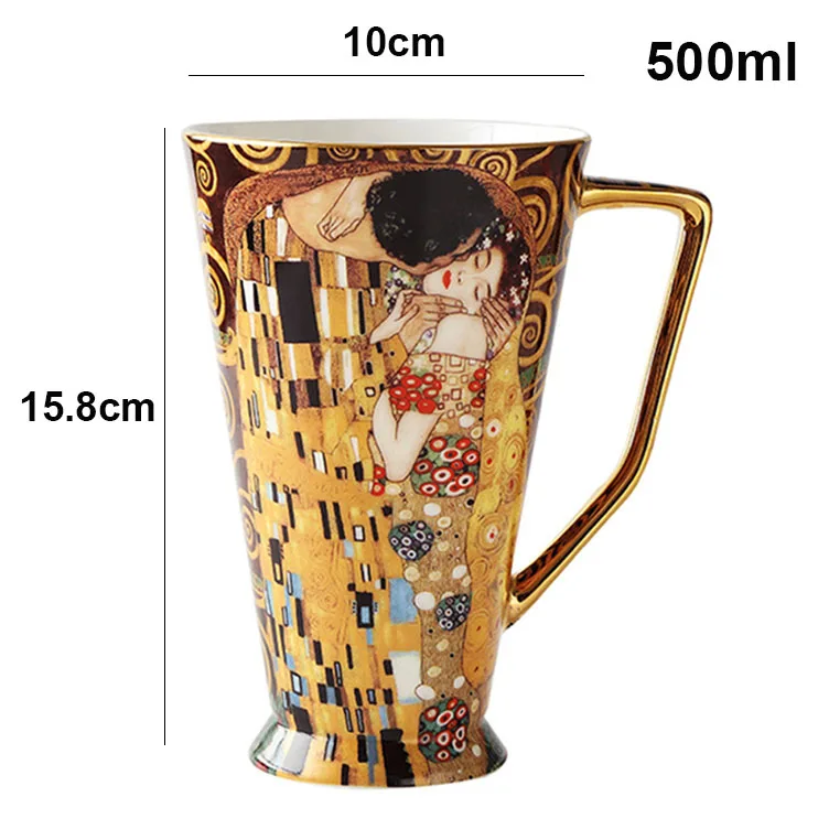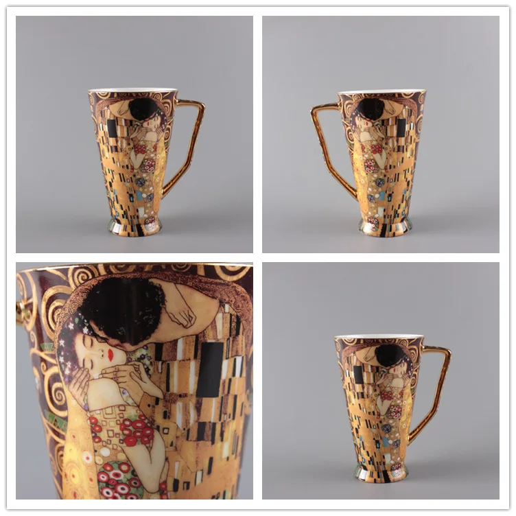 550 мл костяные китайские кружки с ложкой Klimt винтажная художественная живопись 4 стиля в наличии