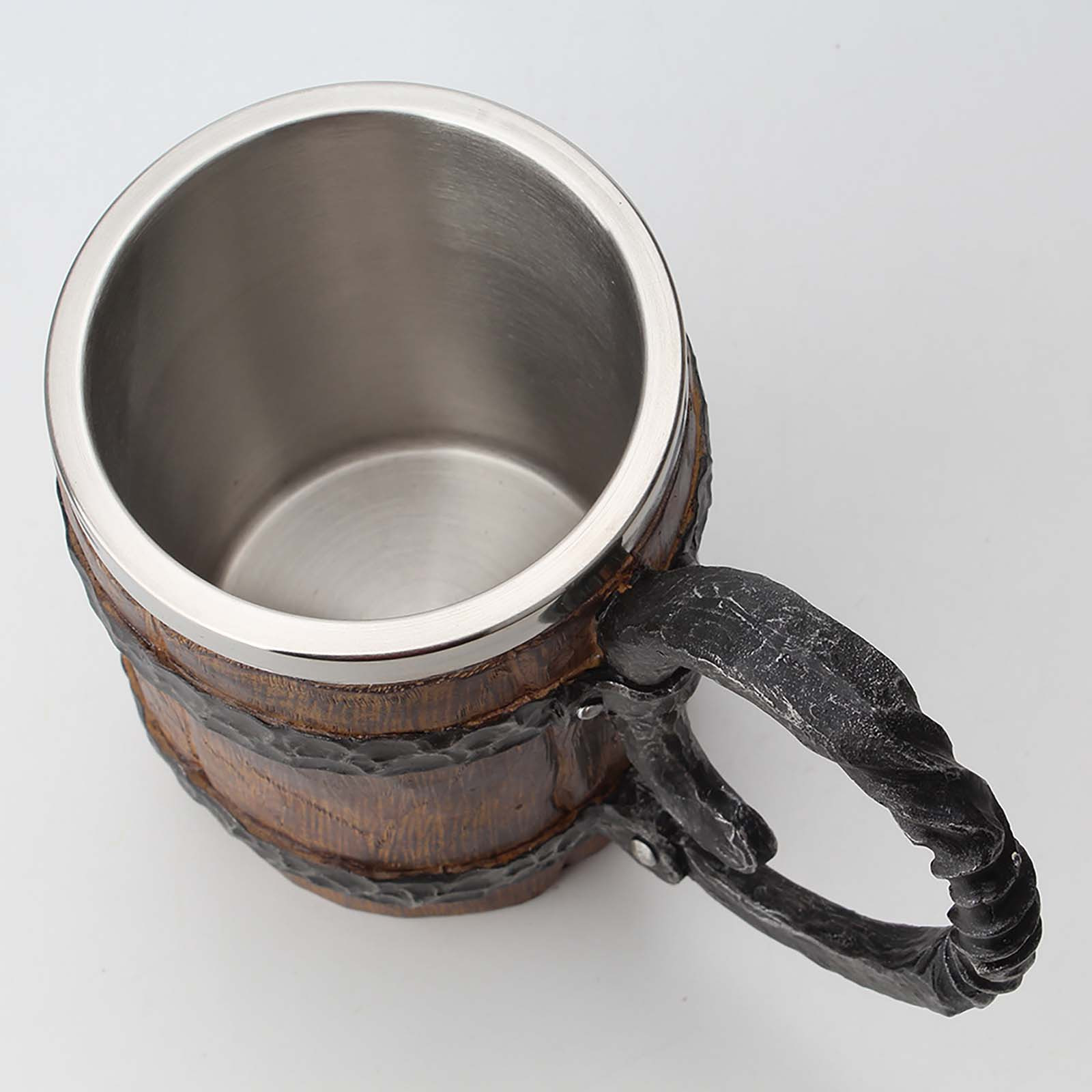 Деревянная Пивная Кружка 650 мл из нержавеющей стали с двойной стенкой ретро коричневый подарок для мужчин