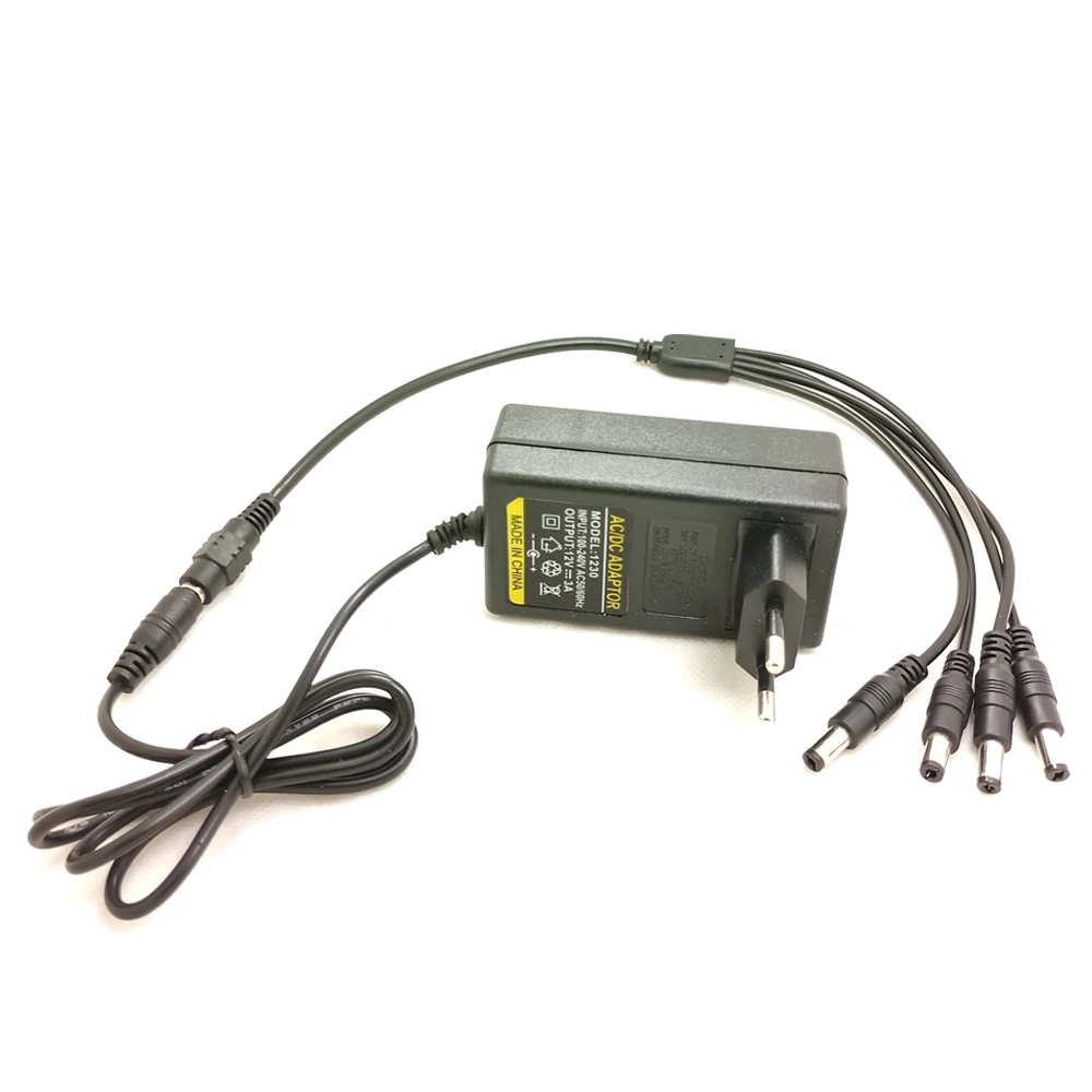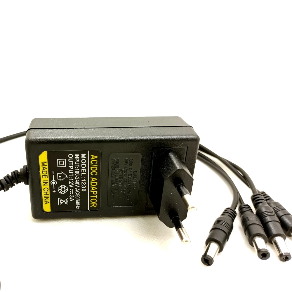 DC 12V 3A Power Supply Adapter + 4 Split Power Cable for CCTV Security Camera DVR Analog AHD TVI CVI IP Camera DVR Systems