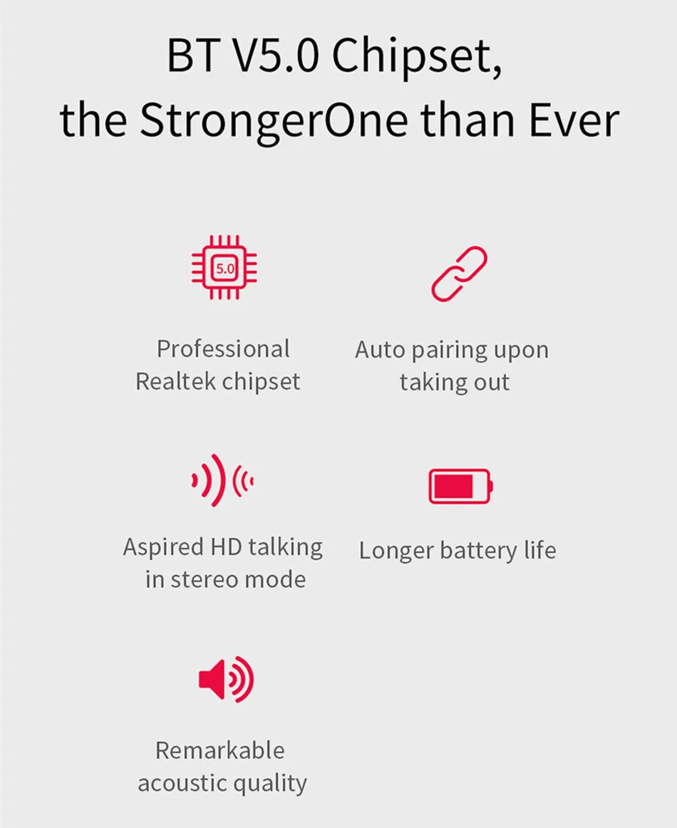 Hi-FiСтерео басовый звук Драйверы с графеновым покрытием этих беспроводных наушников являются жесткими, но светильник. Кристальная четкость и глубокий резонансный бас с деликатно настроенным звуковым сигналом обеспечивают захватывающий звук и ставят вас на сценический центр. Использование новейшего Bluetooth 5,0 обеспечивает супер-сильное соединение Bluetooth и превосходный звук по всему диапазону частот.