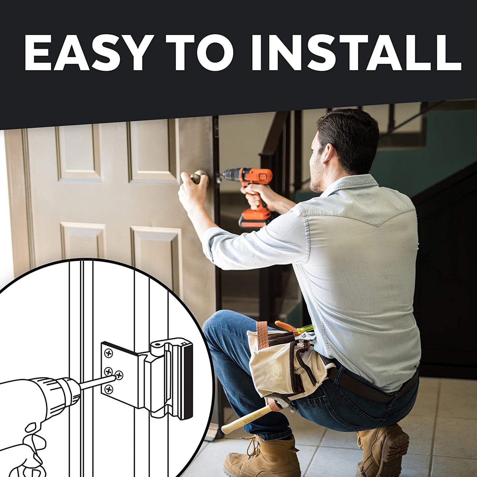 Точность спроектирована из сверхпрочного авиационного алюминия, этот замок двери высокой безопасности построен, чтобы выдерживать до 800 фунтов. С карандашом и отверткой эта защитная задняя и передняя дверная Блокировка очень проста в установке всего за 5 минут, прямо из коробки Это сдержанный, низкопрофильный дизайн делает этот противокражный дверной замок «еле-еле» идеальным как для арендаторов, так и для арендодателей. Он может быть легко установлен без повреждения или изменения большинства стандартных дверных рам, он поставляется в различных отделках для смешивания и соответствия существующему оборудованию Идеально подходит для домов с маленькими детьми, этот дверной замок для детей легко крепится вне его досягаемости, а его пружинный дизайн делает его почти невозможным для маленьких рук.Спецификация: