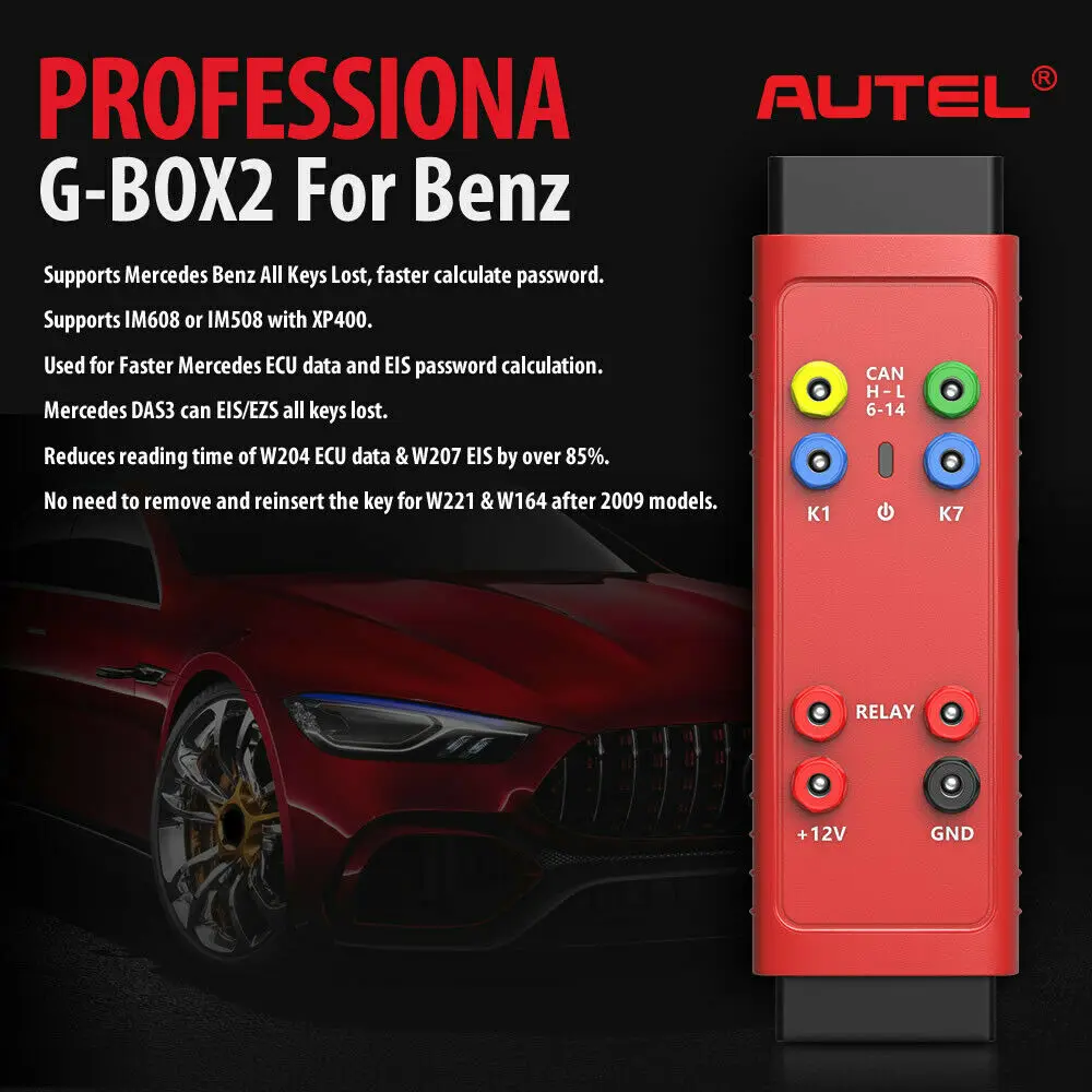Autel G-Box предназначен для использования на автомобилях Mercedez-Benz с DAS3 CAN EIS/EZS в акл. Это помогает сэкономить время для чтения данных ECU от W204 и W207 EISs более чем на 85%.