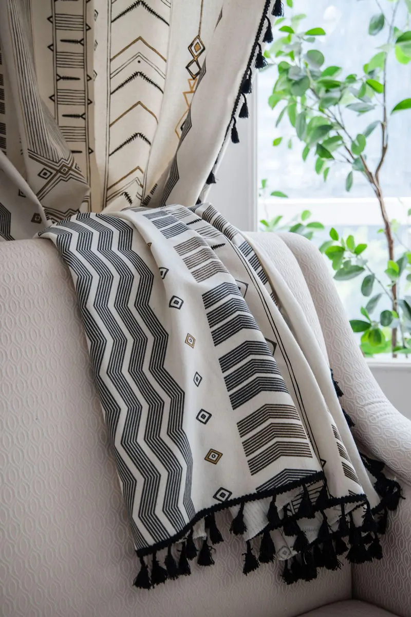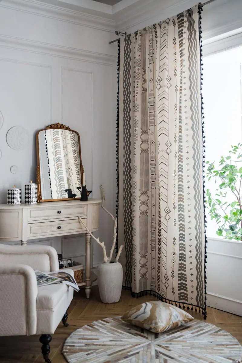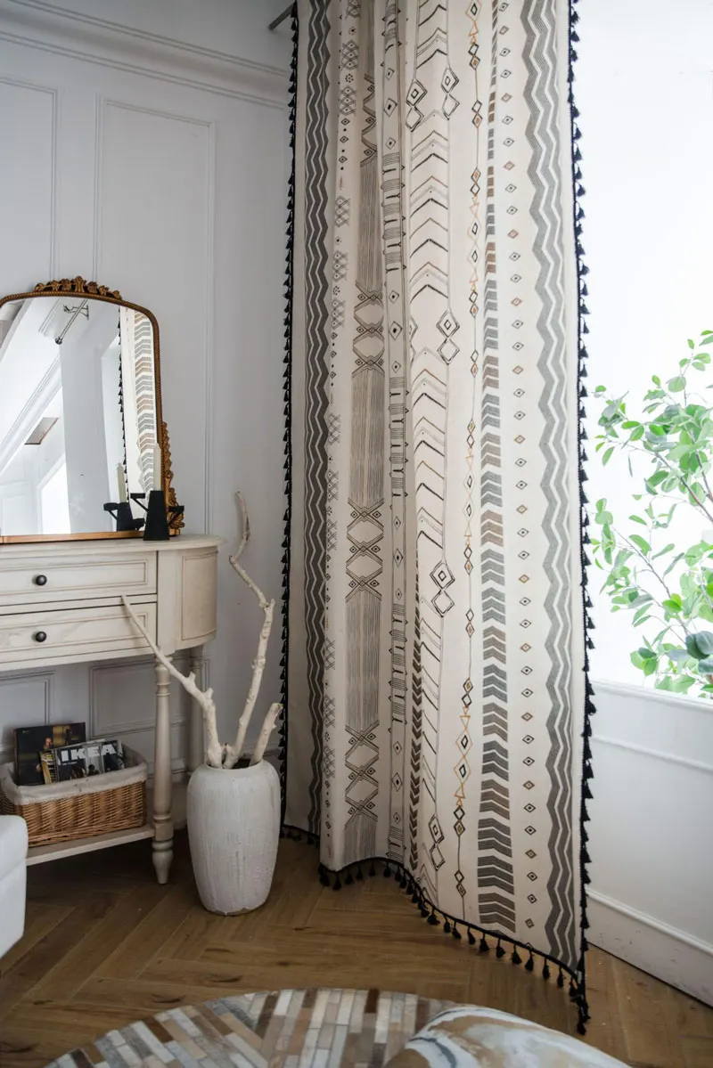Окно в стиле бохо, занавески с кисточками, хлопок, лен, Геометрическая полоска, богемный стиль занавес в рустикальном стиле, занавески, занавески для гостиной, спальни