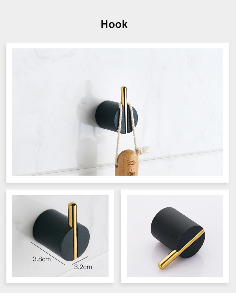 Черный золотой набор оборудования для ванной, настенный крючок для халата, вешалка для полотенец, стойка для бара, кольцо, полка, бумажный держатель