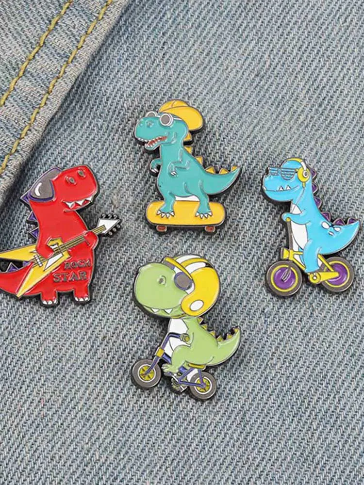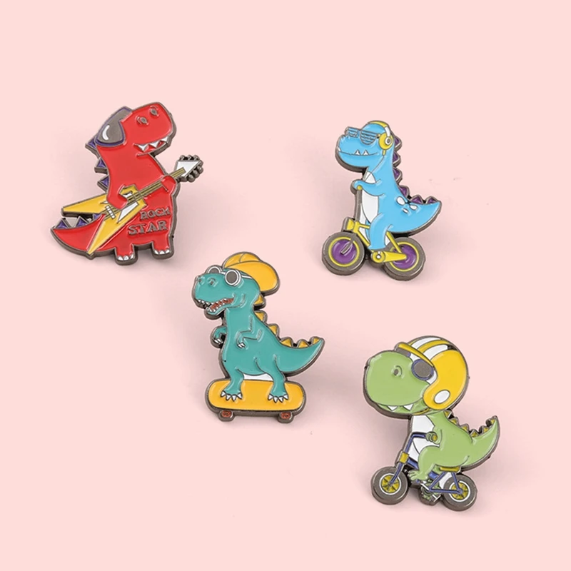 Cartoon Dinosaur Enamel Pin Cool Wind Guitar Skateboard Badges Brooches For Women Bag Backpack Accessories Gifts For Friends
