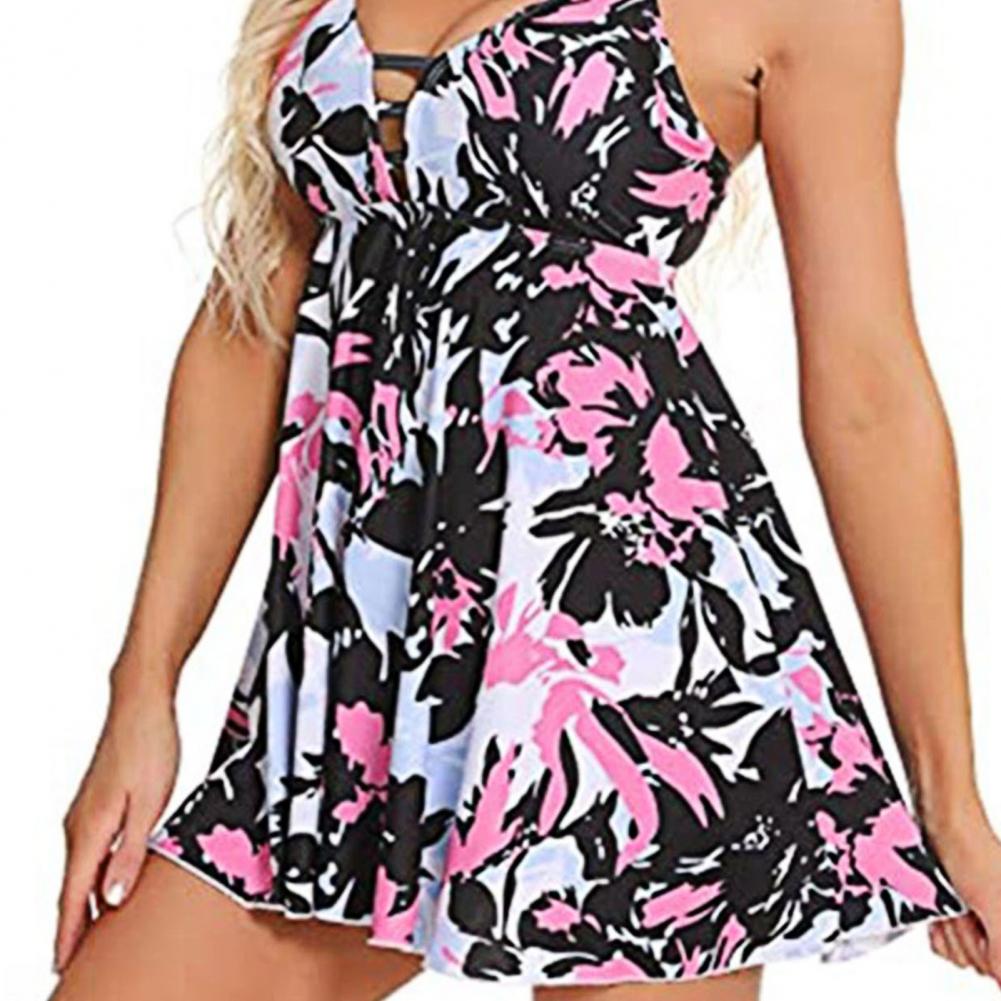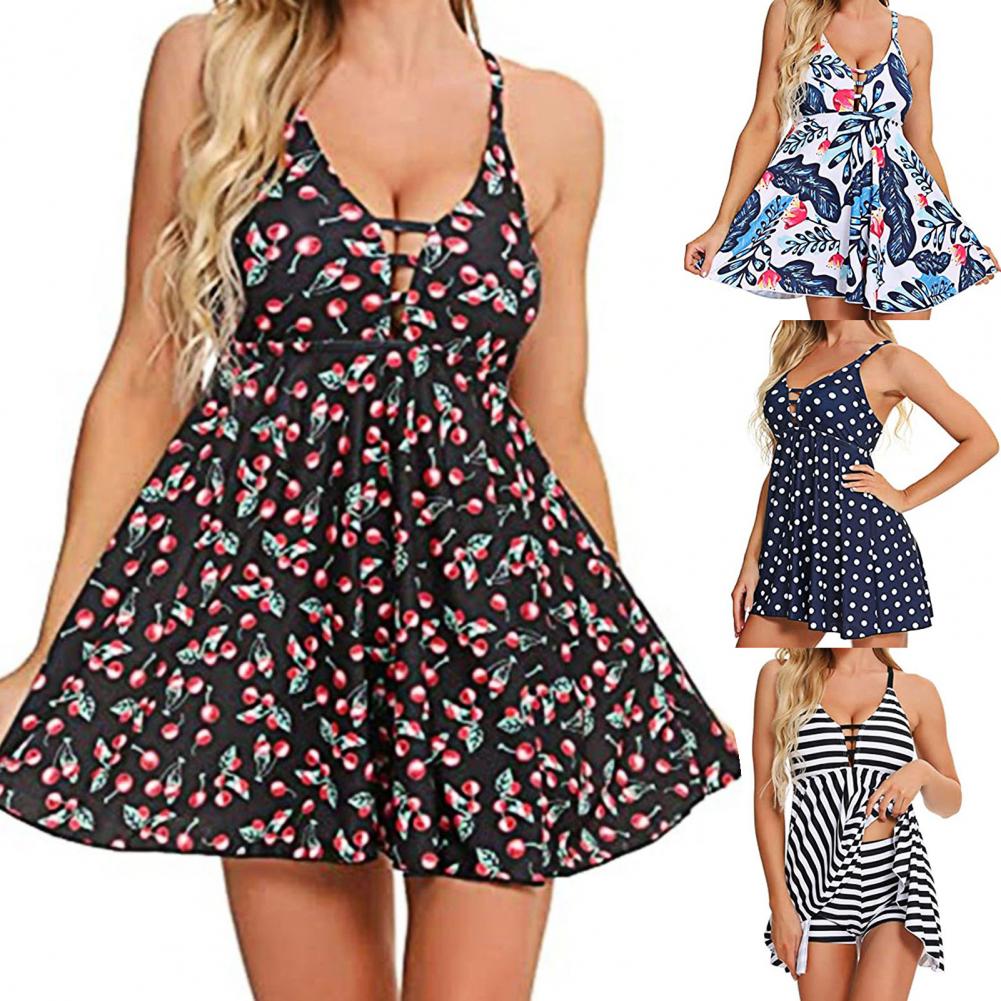 Женский купальный костюм пуш-ап, с принтом, глубоким v-образным вырезом, с подкладкой, топ, Свободный Подол, контроль живота, купальник для пляжа