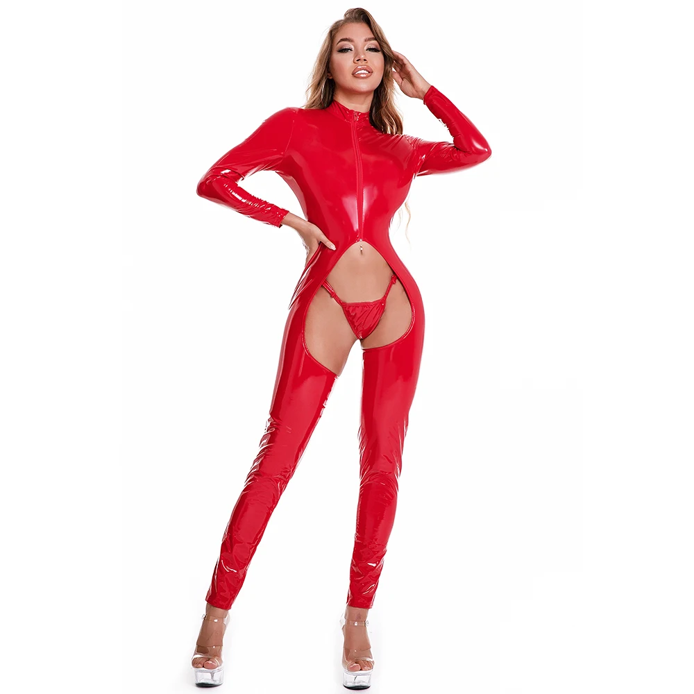 Красный Черный Мокрый Вид ПВХ открытый промежность женское сексуальное боди, женское белье латексный комбинезон без косточек костюмы сексуальное нижнее белье порно боди XXXL