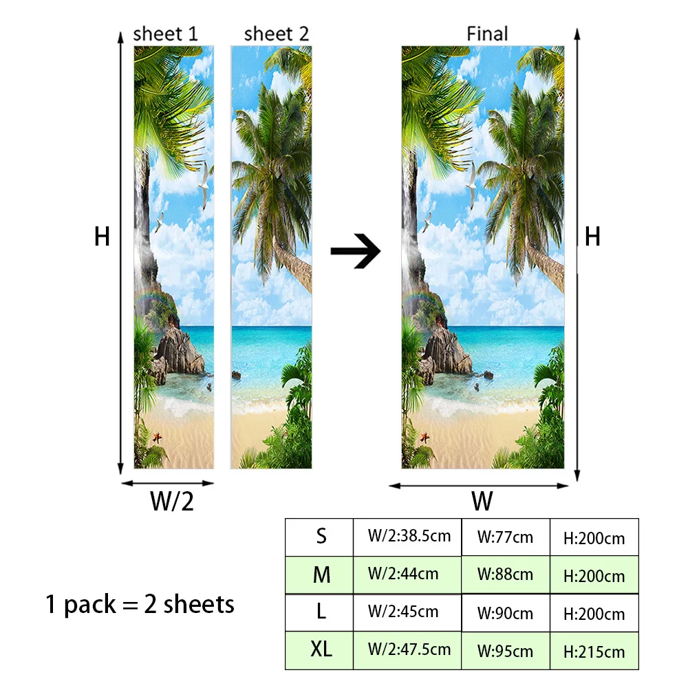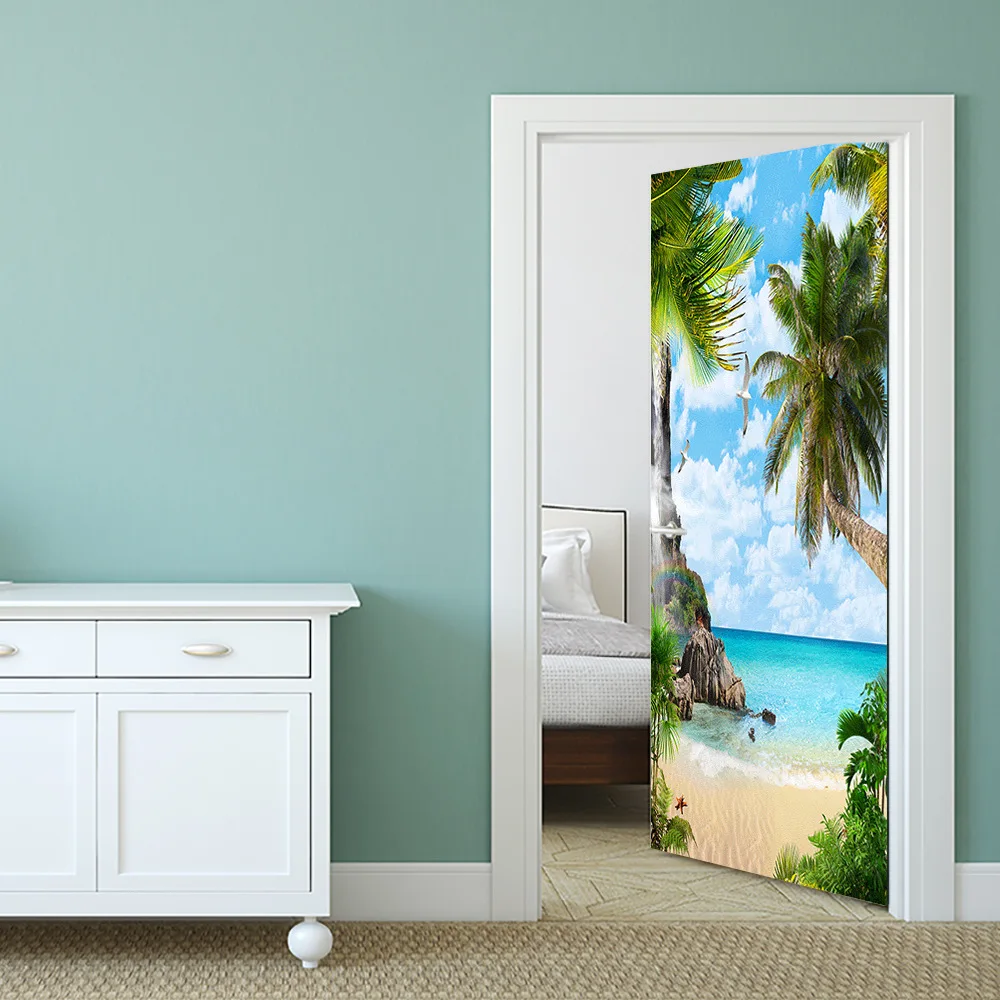 ПВХ двери наклейки 3D пляж море пейзаж фотографии обои настенные наклейки для гостиной спальни самоклеющиеся двери украшения постер