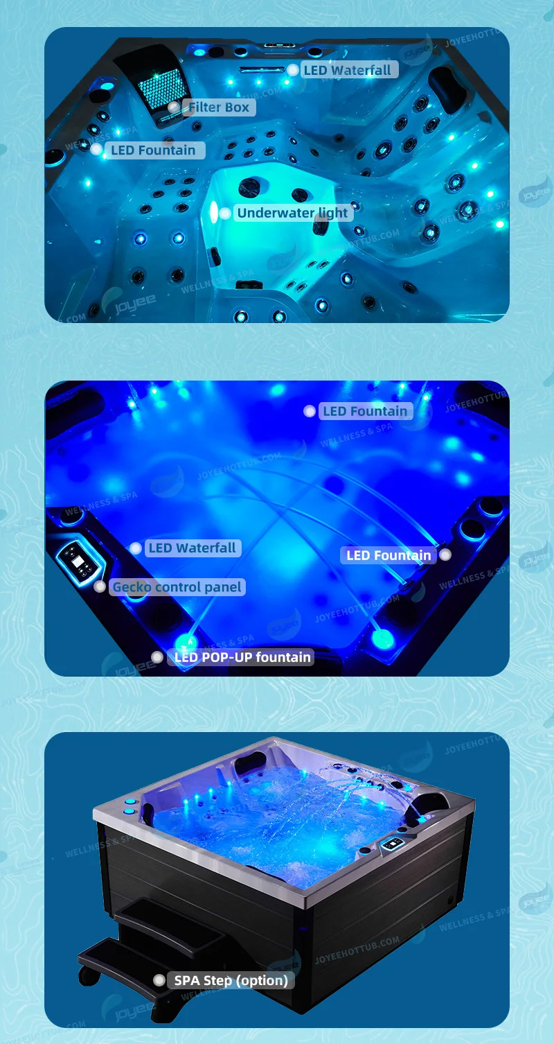 Наша Ванна изготовлена из 4 мм чистого акрила, рамы из нержавеющей стали и выбрать «LX» насос, который с сертификатом CE, UL и SAA. Каждая ванна должна пройти проверку воды 24 часа без протекания. Затем посылка.