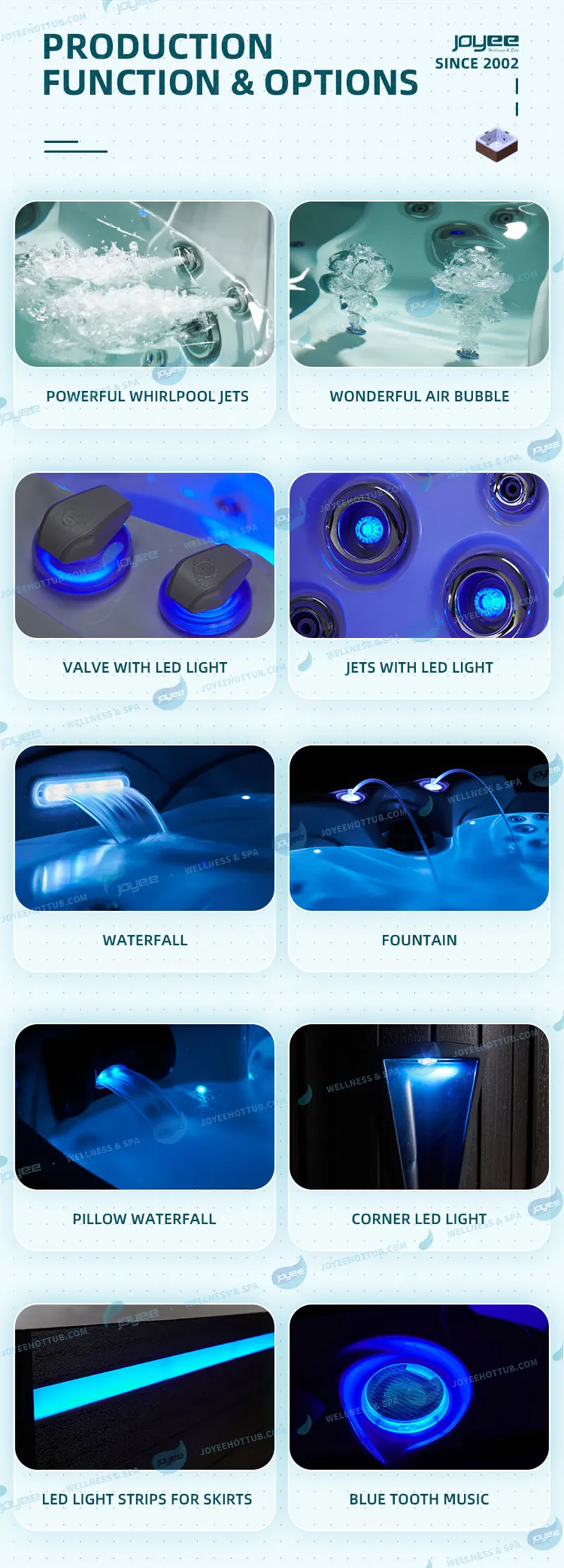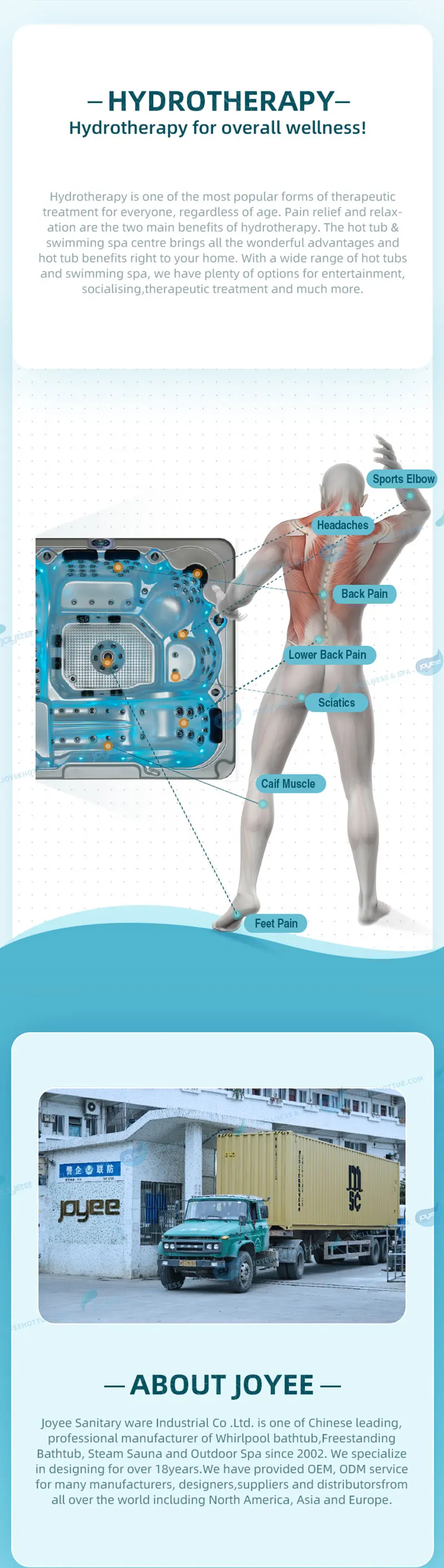 Компания JOYEE была основана в 2002 году и расположена в городе Фошань. И сейчас мы имеем сильную производственную мощность и лидирующую в мире масштабную экономию. Наш рынок в джакузи, ванной, спа-салоне, парной и сауне. С ISO9001
