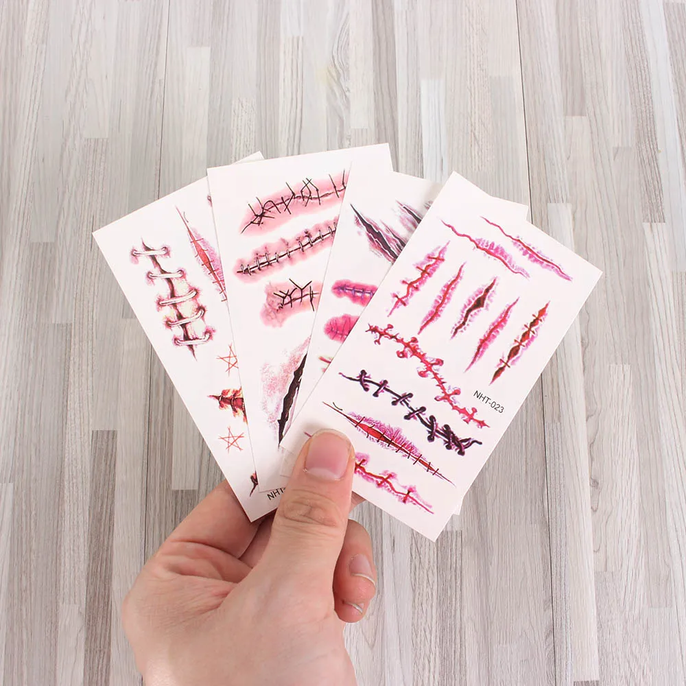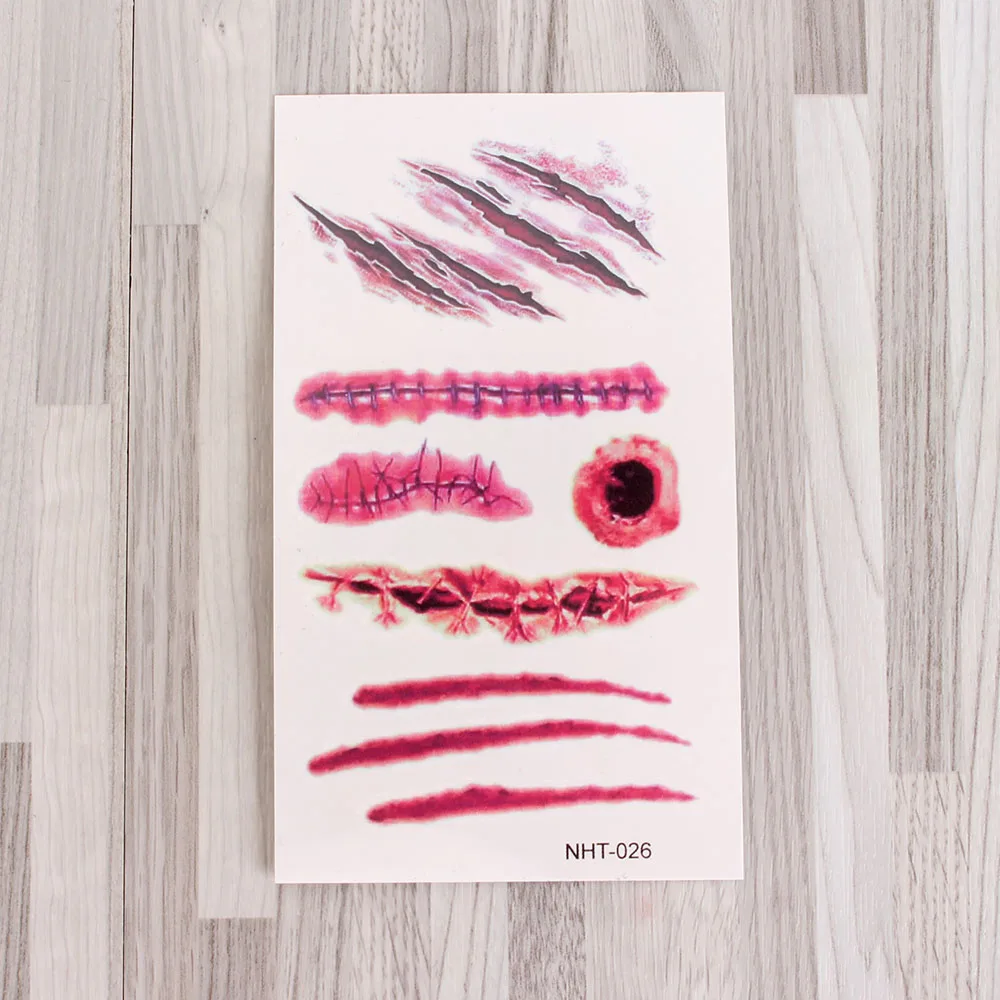 Halloween Zombie Scars Tattoos With Fake Scab Bloody Makeup Halloween Decoration Wound Scary Blood Injury Sticker