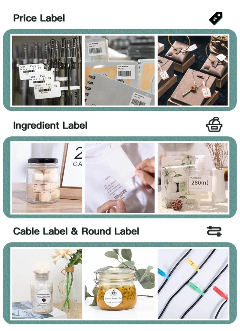 * Подходит для этого мини принтер для этикеток имеет широкий спектр применения, включая многие отрасли: одежда, продукты питания, телекоммуникации, ювелирные изделия, школы, домашнего использования и печати в повседневной жизни.