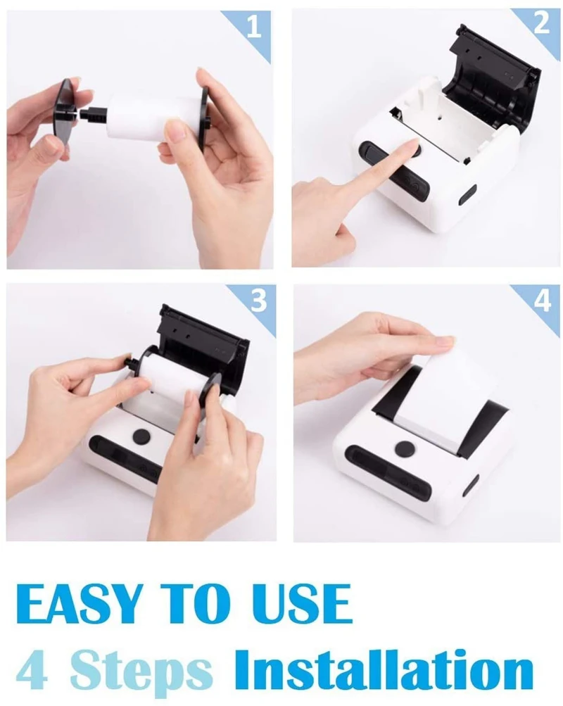 * Портативный размер (120x117x60), ширина принтера 20 мм-80 мм. 5 В/2 А, встроенный аккумулятор 2600 мАч с быстрой зарядкой, полностью заряженный аккумулятор может работать в течение 1 недели.