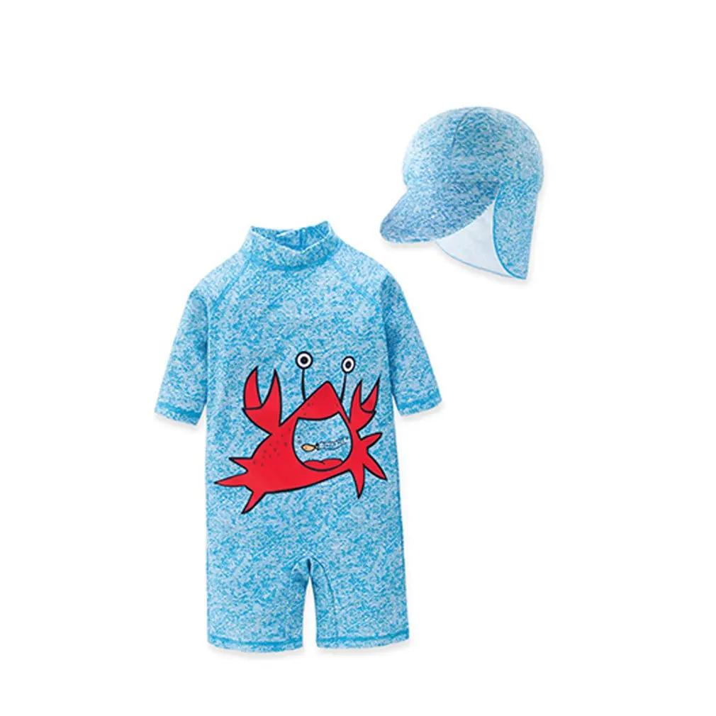 Купальный костюм с рисунком алого цвета для мальчиков + шапочка для плавания, комплект для мальчиков 2-7 лет, популярный весенний купальный костюм для детей, летний купальный костюм с короткими рукавами и круглым вырезом для мальчиков