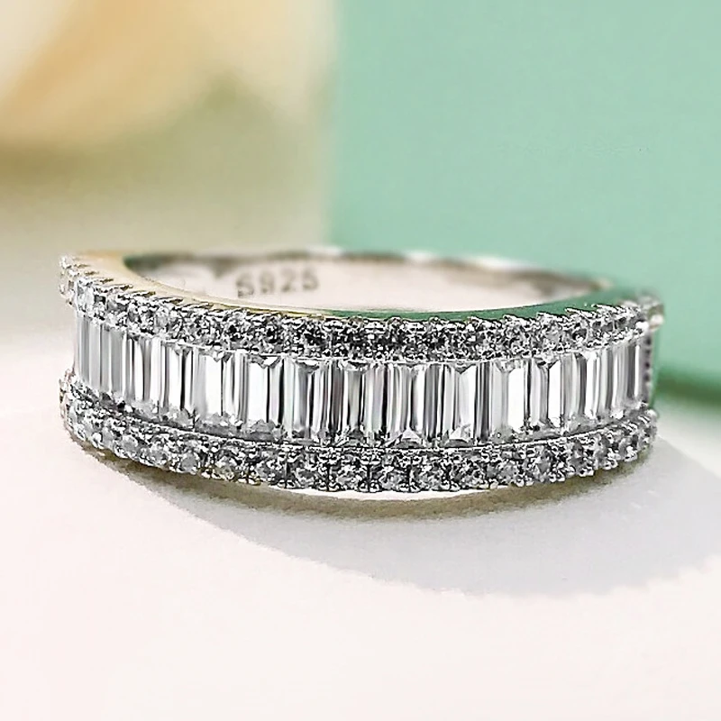 COSYA/100% Стерлинговое Серебро 925 пробы, двухрядные блестящие кольца с высоким содержанием углерода для женщин, вечерние ювелирные украшения на годовщину помолвки