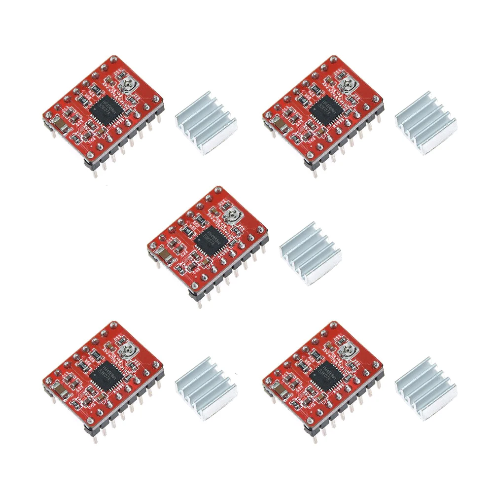 5 шт. A4988 шаговый Драйвер + радиатор для Reprap 3D деталей принтера