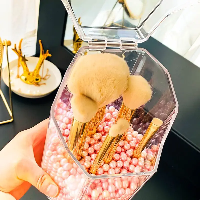 Прозрачная акриловая откидная крышка Пылезащитная Кисть для макияжа ведро карандаш для бровей коробка для хранения кистей жемчужная коробка для макияжа