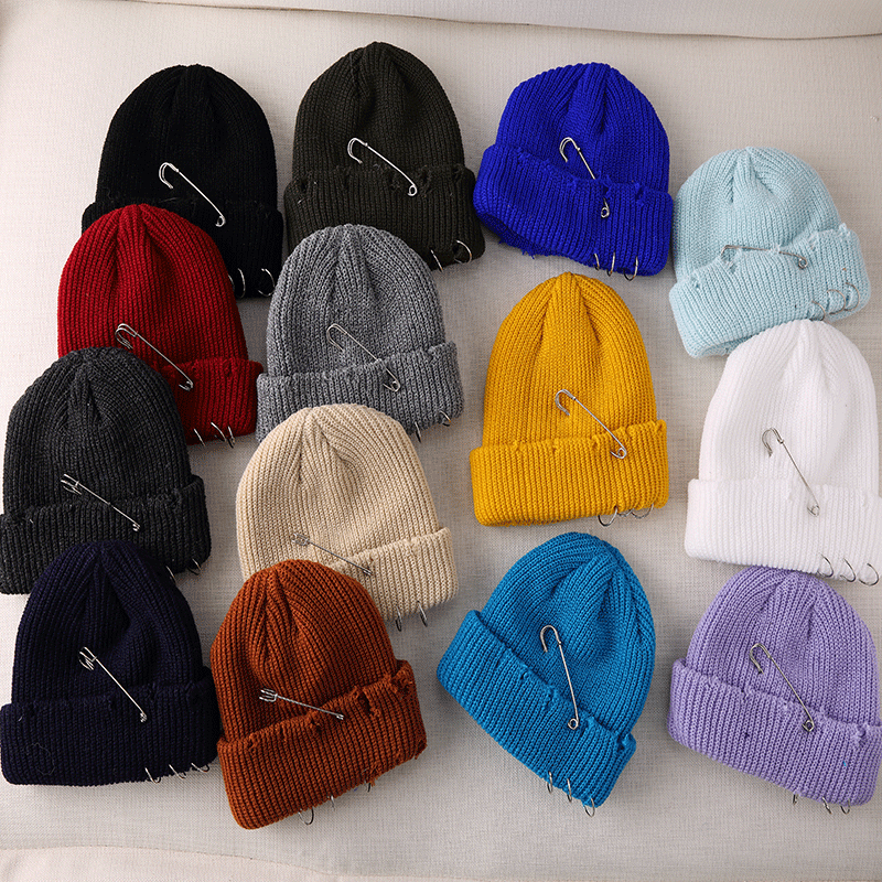 Name:Men Hip Hop Harajuku Skullies Beanies Hats Ripped Holes Knitted Hats Plain 2021 Autumn Winter Soft Cotton Warm Caps